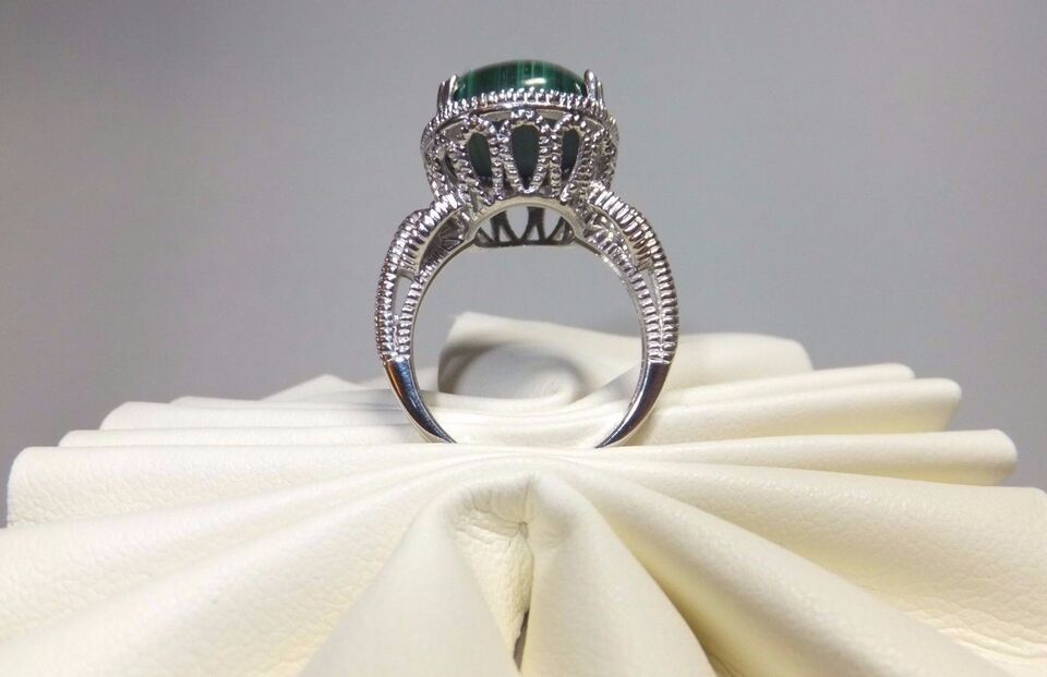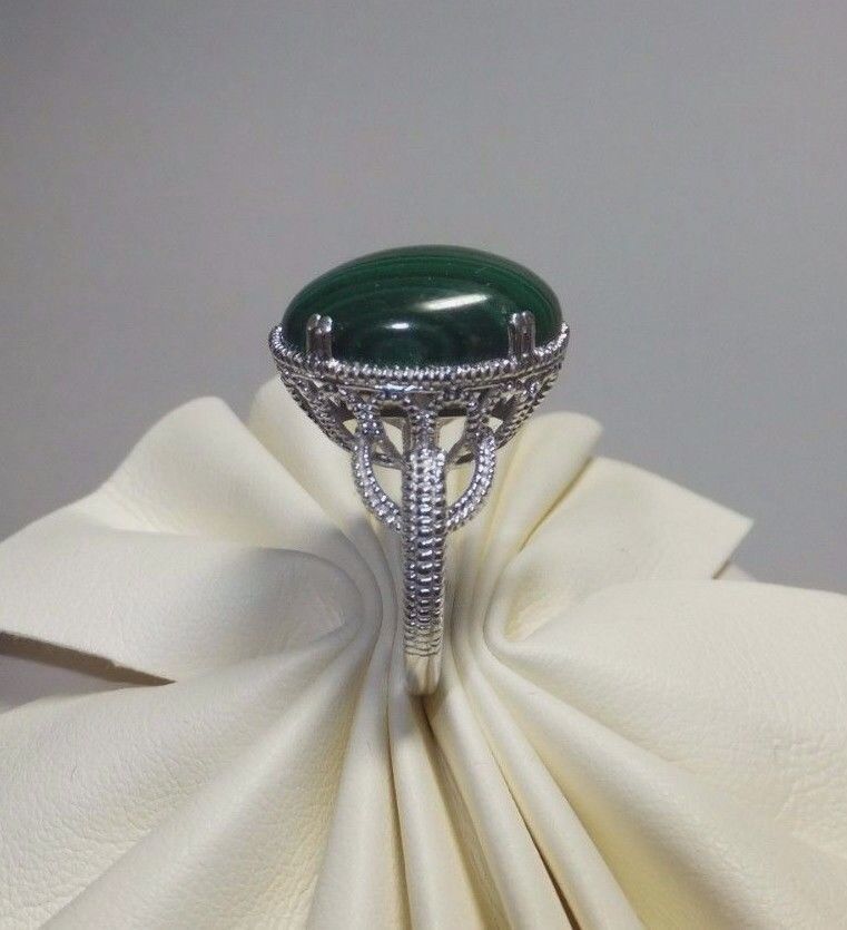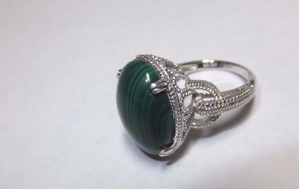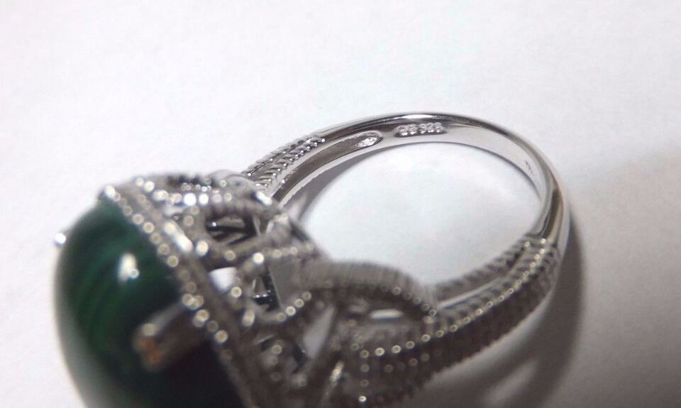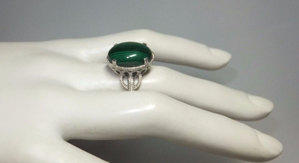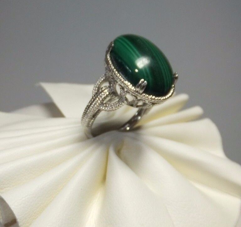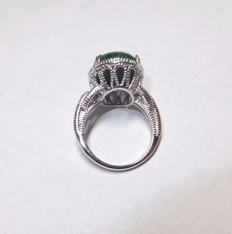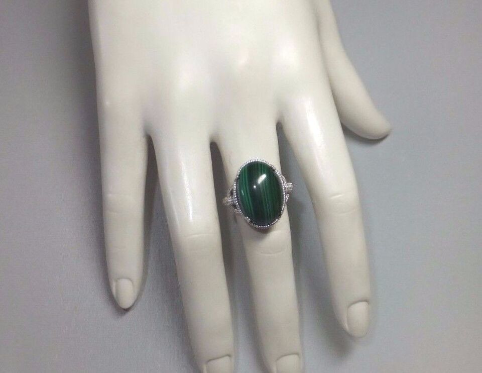 Brand New Sterling Silver 18mm x 13mm Oval Cabochon Malachite Ladies Ring