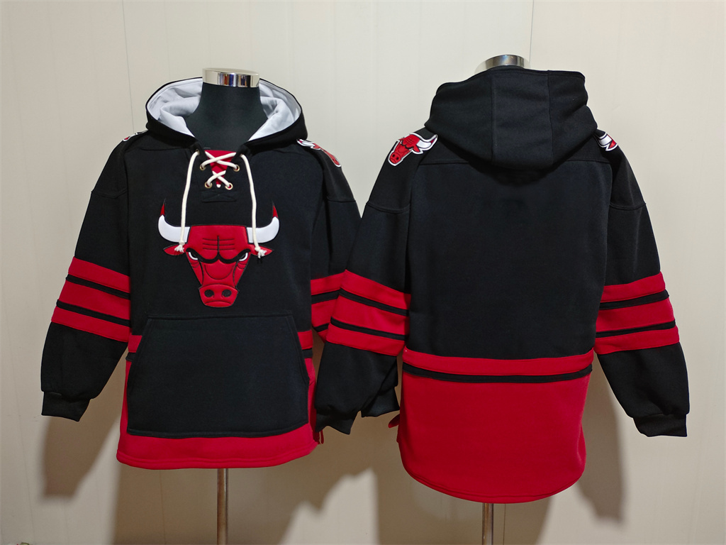 Blank Chicago Bulls Black Pocket Lace-Up Pullover Hoodie