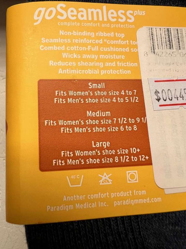 Description : GoSeamless Casual Light Socks Navy Small Description Casual (Diabetic) Socks goSeamless No inside seam, no irritating ridges Non-binding foot and calf comfort Constructed to provide extra cushioning as well as a smooth fit without pressure, bunching and tightness Soft combed cotton construction. Wicks away moisture Suitable for all shoe types?dress, casual, orthopedic, sport and boots Recommended for: Diabetes, Arthritis and Sensitive Feet See our store \r\n "the second offer" \r\n