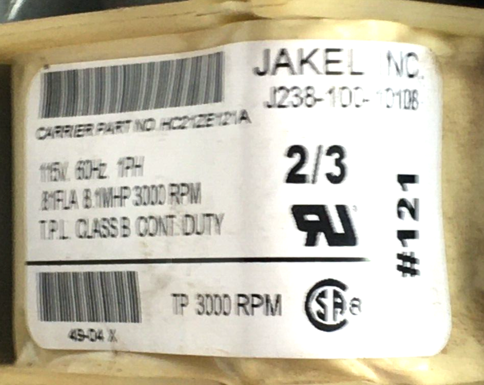 This is JAKEL J238-100-10108 Draft Inducer Blower Motor HC21ZE121A used previously, refurbished part, excellent working condition.