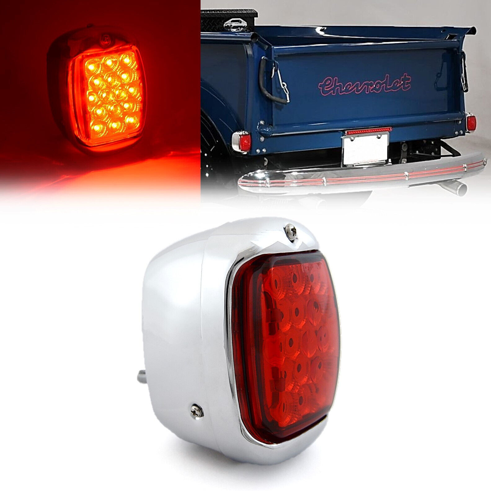 Red LED RH Tail Lamp Lens Chrome Housing Assembly for 1940-53 Chevy GMC Truck