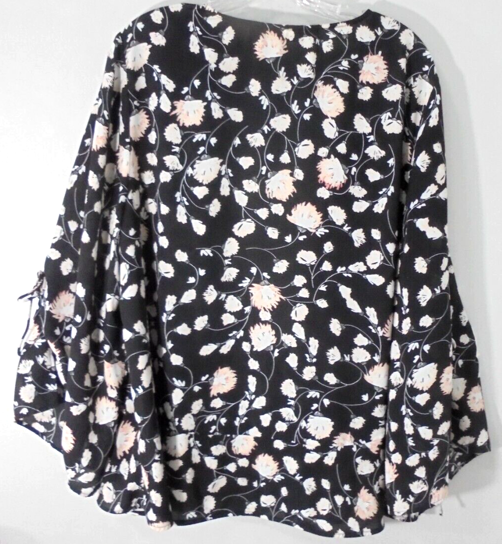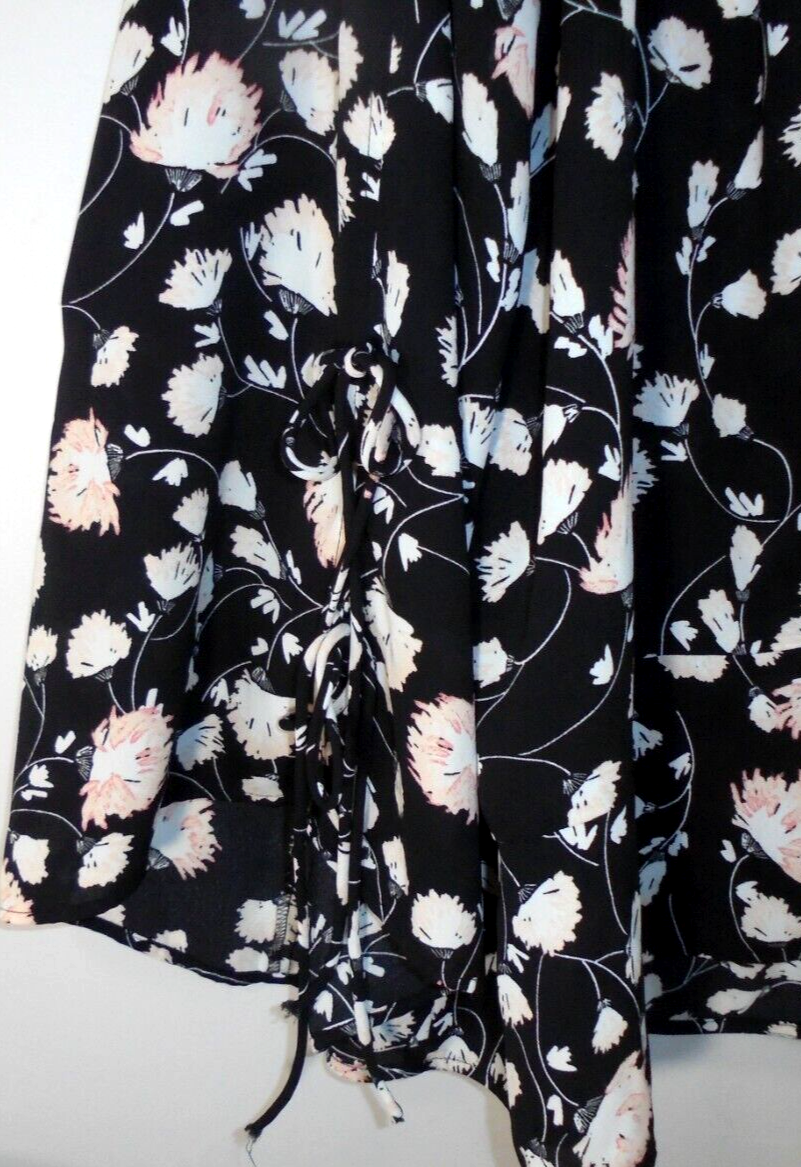 Sejour Womens 1X Floral Black Kimono Duster Drape Open Front Cardigan Tie Bottom