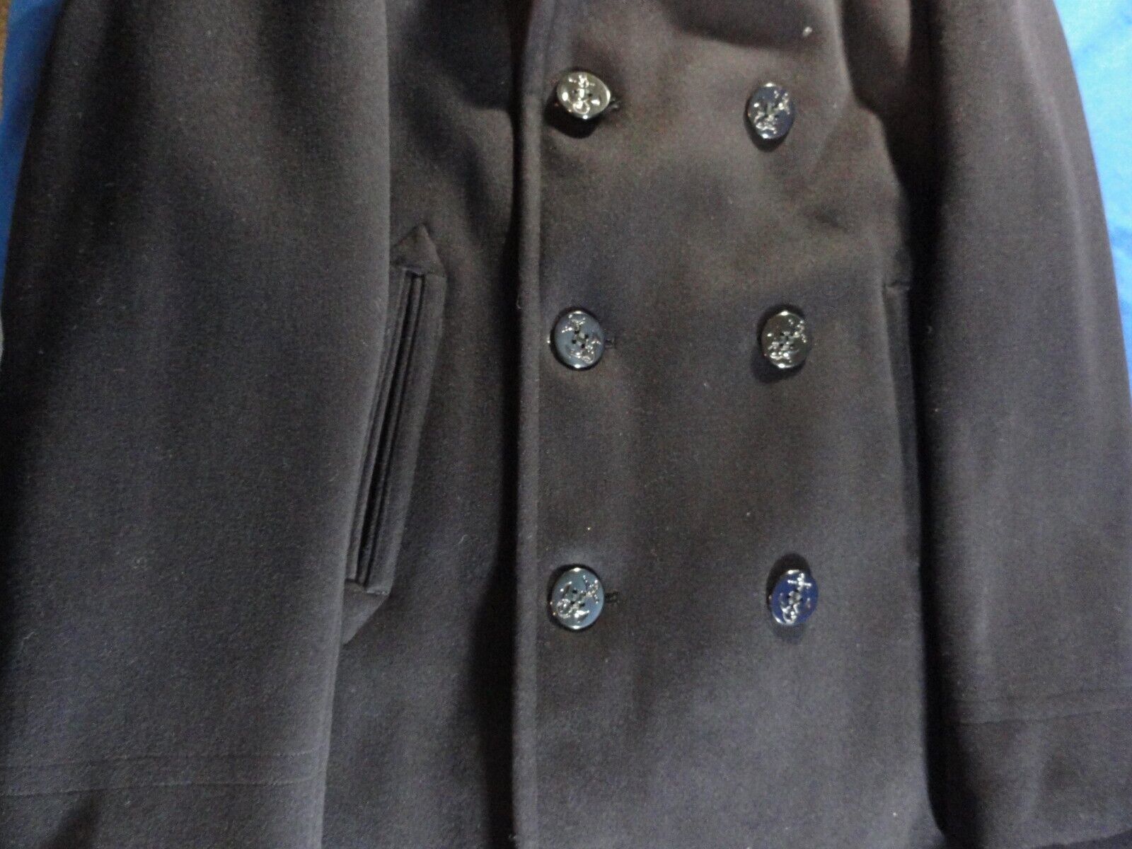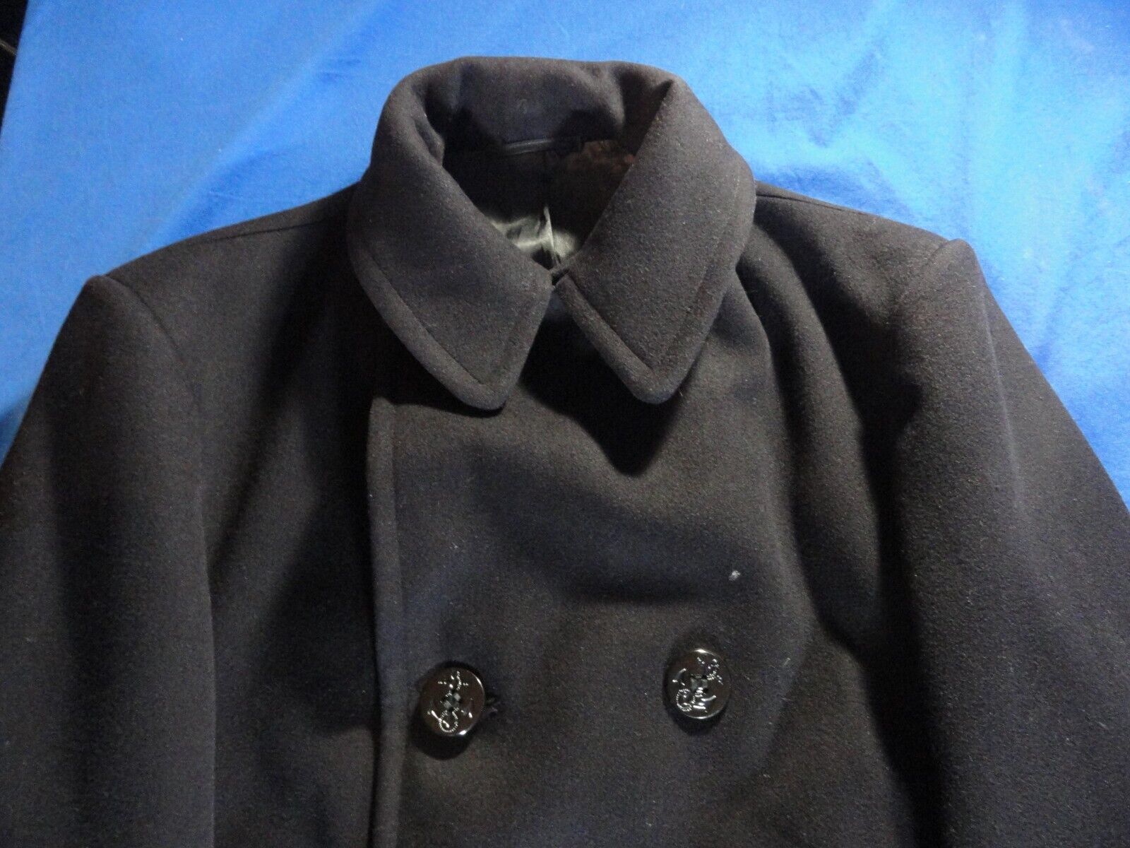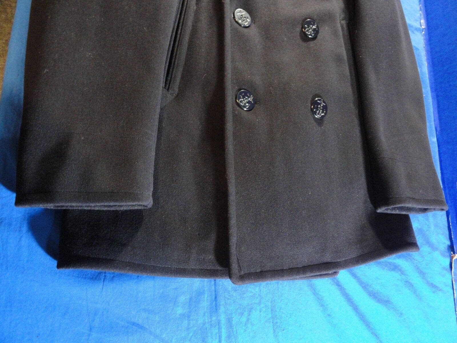 Vintage US Navy Pea Coat Mens 38 Black Wool Kersey 60s USA USN ORIGINAL ISSUE