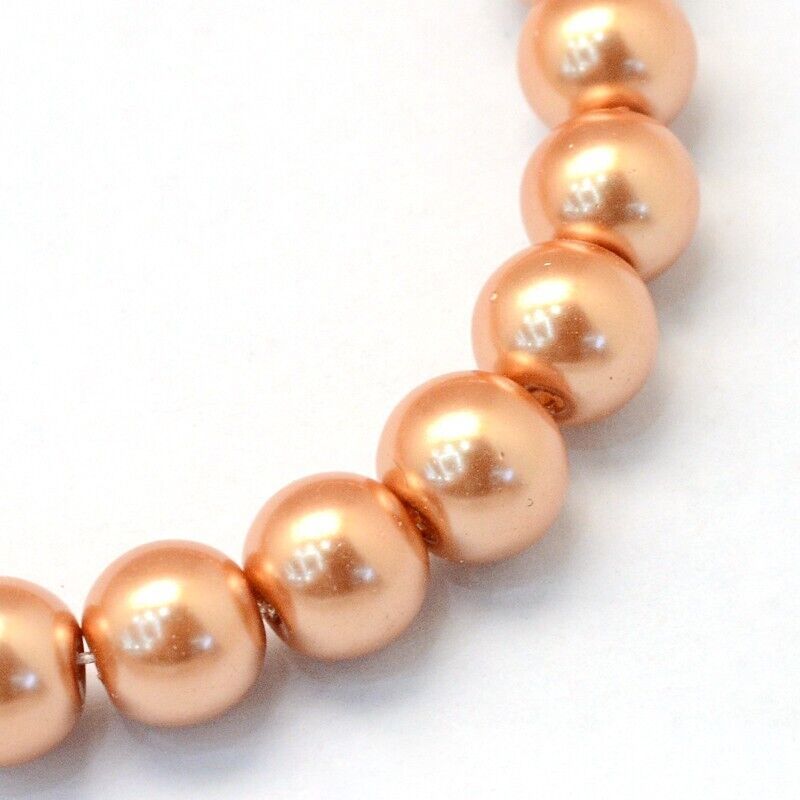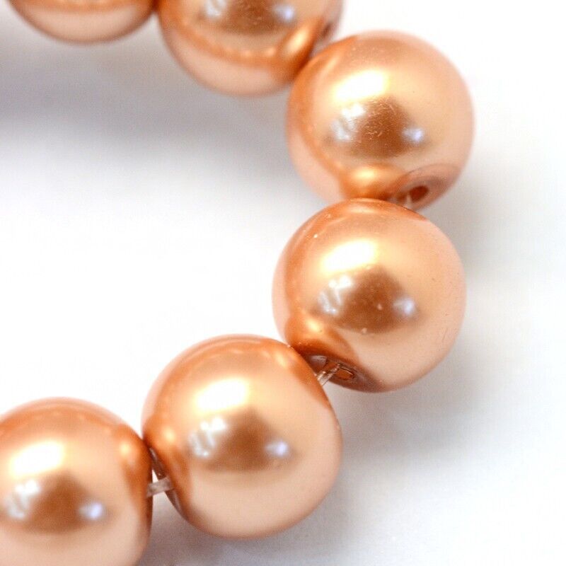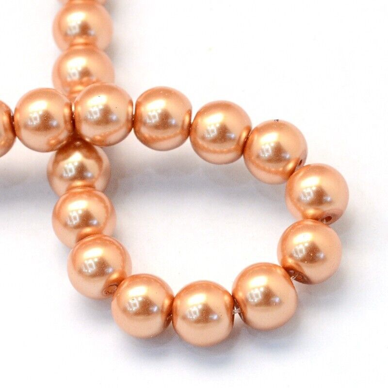 Description: Baking Painted Pearlized Glass Pearl Round Bead Strands, Sandy Brown