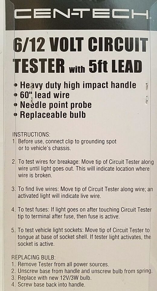 6 / 12 Volt Circuit Tester 5 Ft Lead Test and 50 similar items