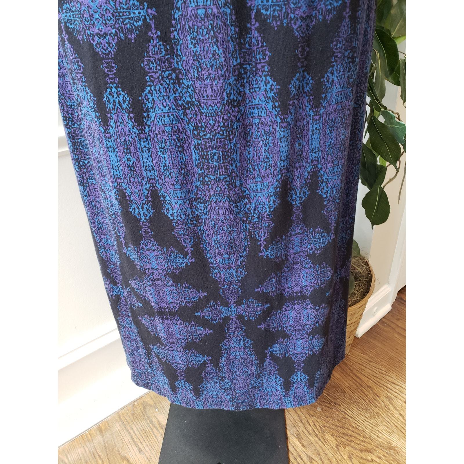 Gap Smocked Long Maxi Dress Women's Small Black Blue Geo Print Off The Shoulder