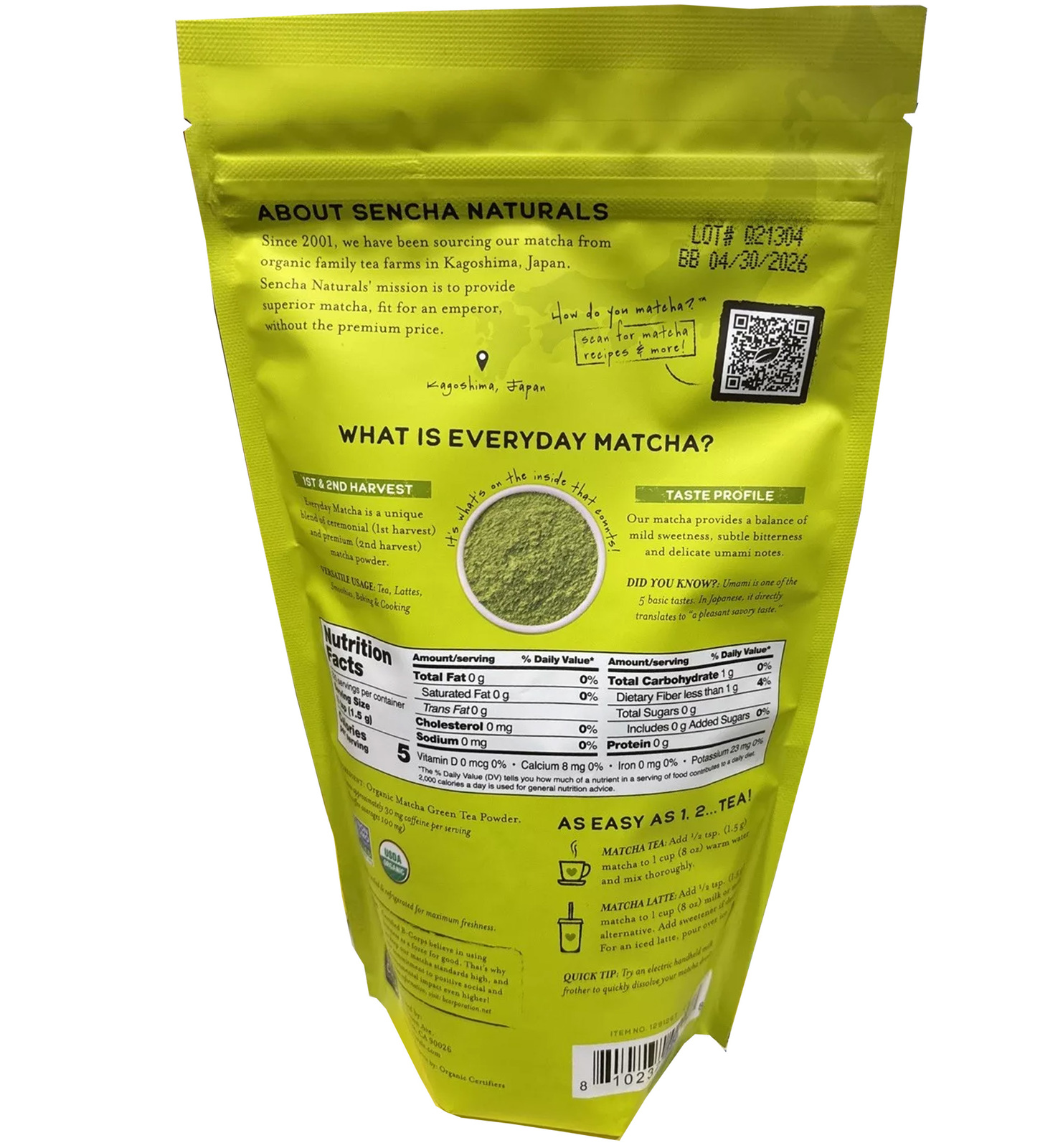 Sencha Organic Everyday Matcha 100% Japanese Green Tea Powder 12Oz 225 Servings