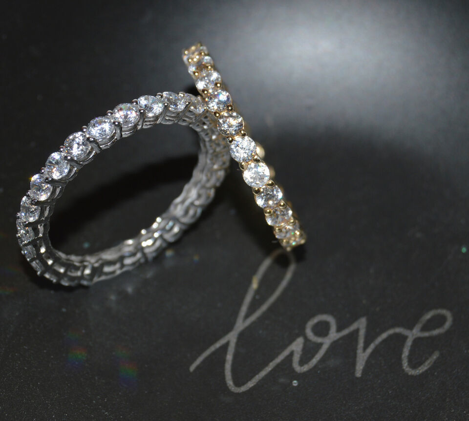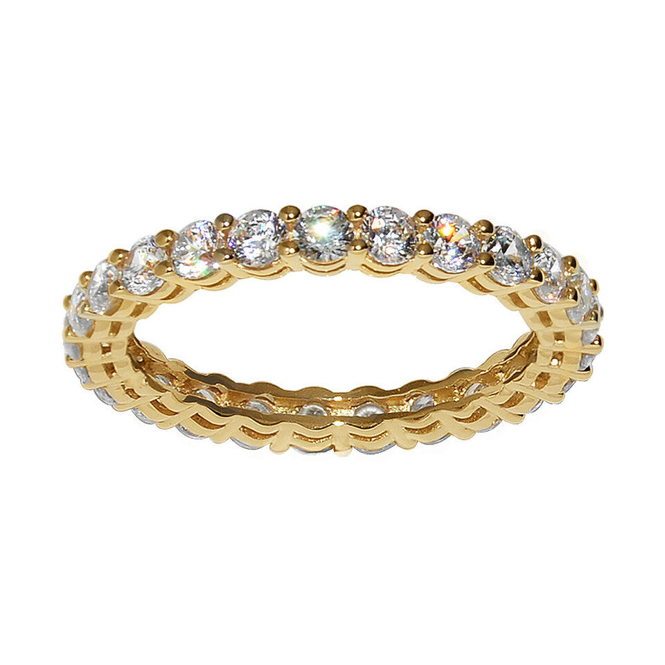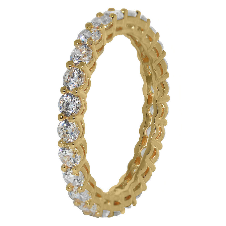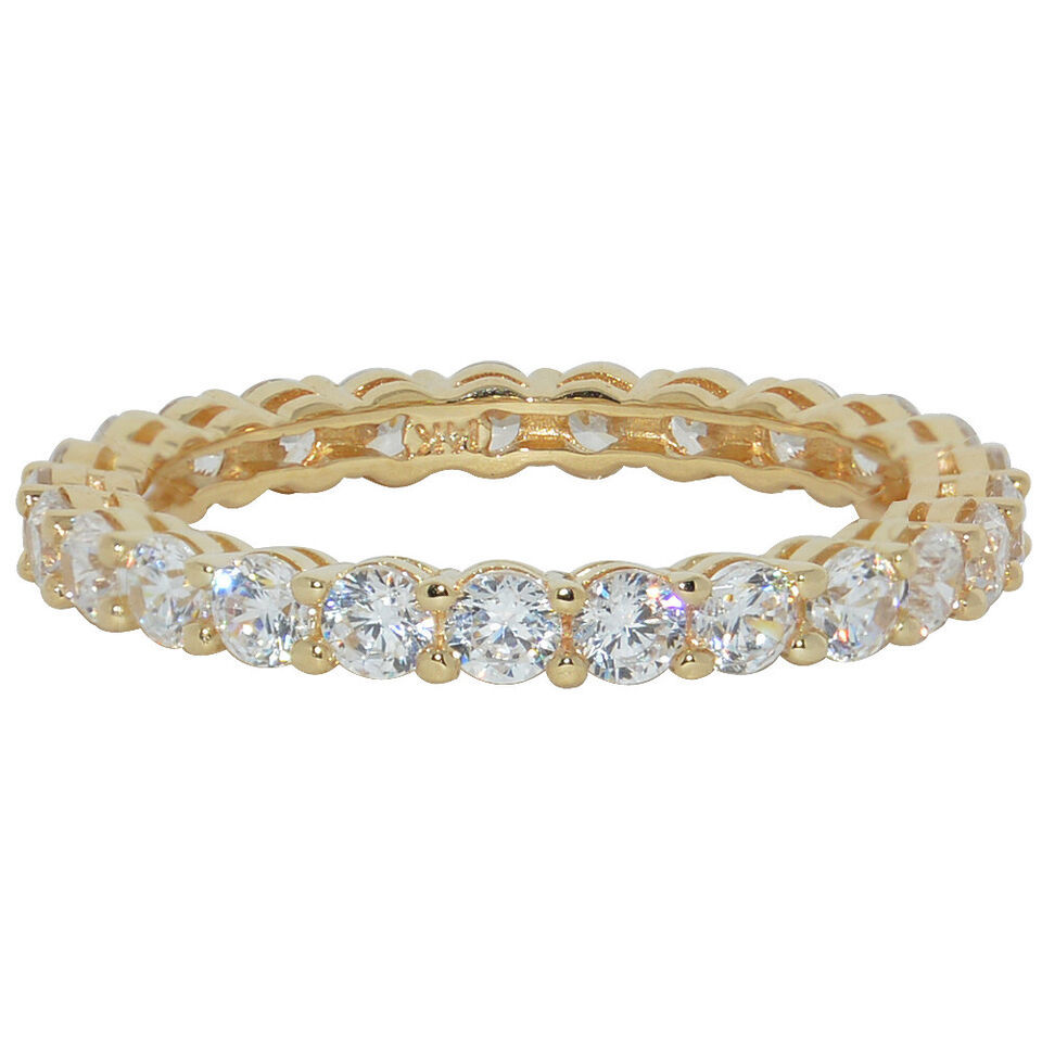 Genuine 14k Yellow Gold Prong-Set Round Cubic Zirconia Eternity Band Sizes 5-9
