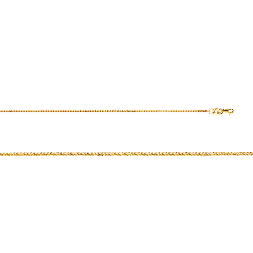 Completing this enchanting piece is a matching 14k yellow gold 0.8-mm square wheat chain, adorned with a sparkling diamond-cut design. You can choose from lengths ranging from 16 to 22 inches to perfectly suit your style.