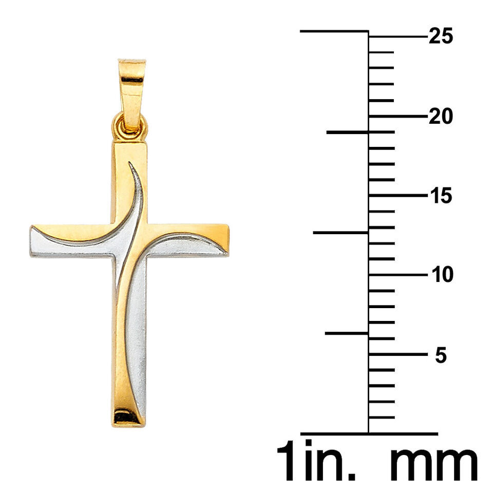 Genuine 14k Two-tone Gold 0.90" Religious Cross Pendant For Men or Women