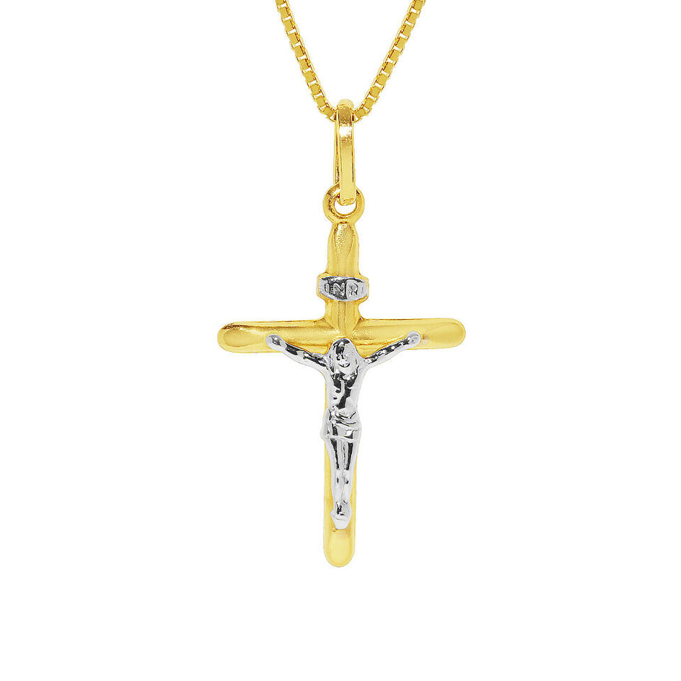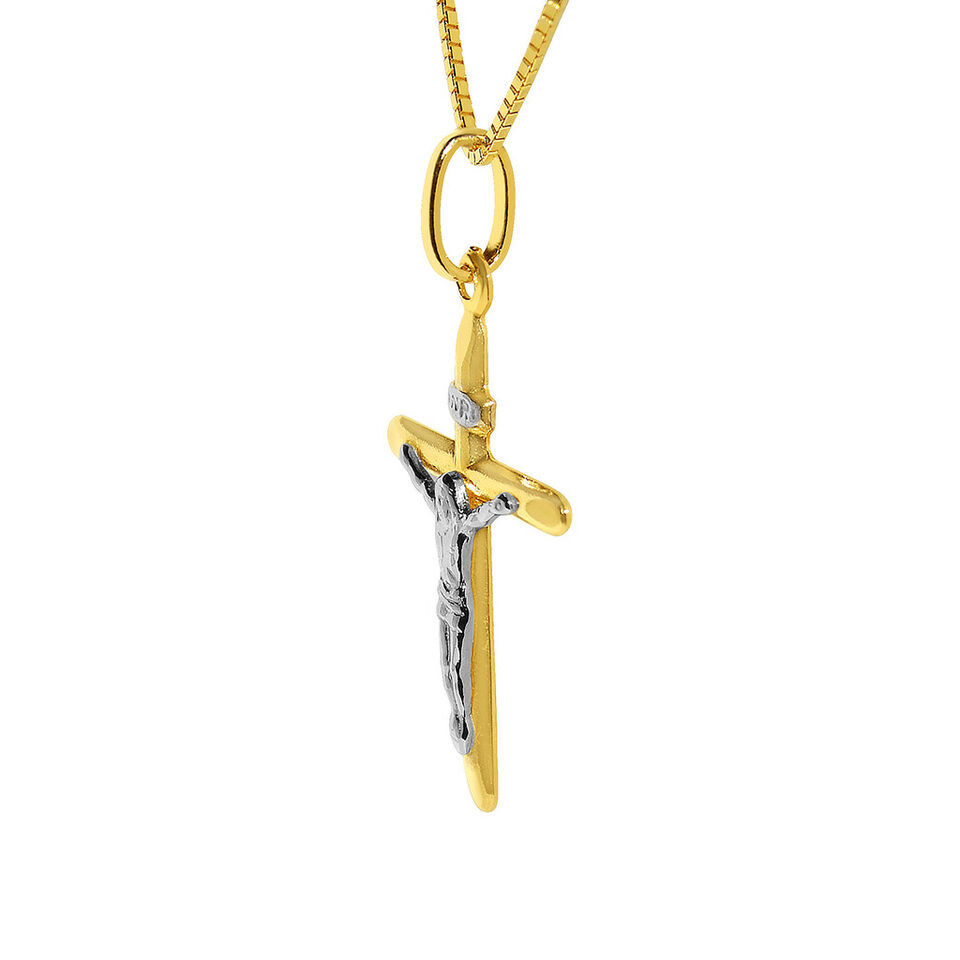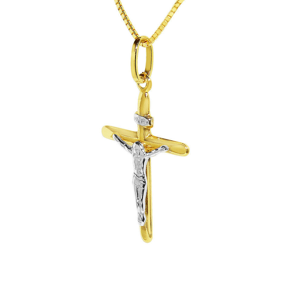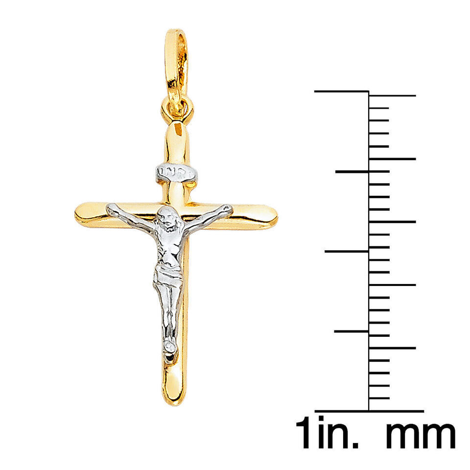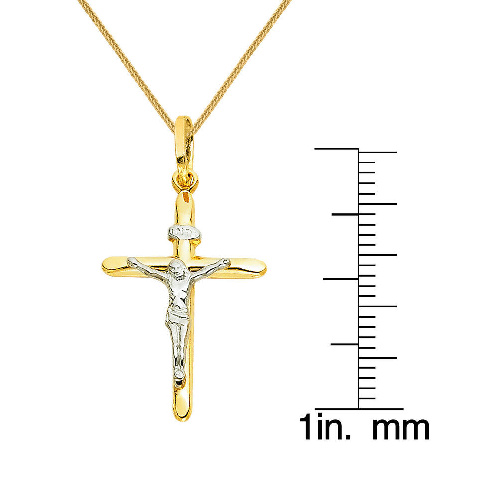 Genuine 14k Two-Tone Gold 1.18" Crucifix Religious Pendant Necklace 16" to 22"