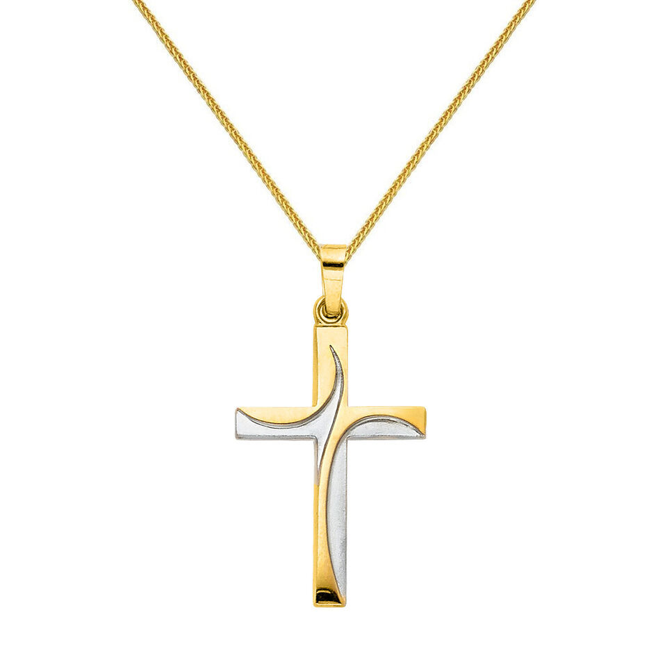 Genuine 14k Two-tone Gold 0.90" Religious Cross Pendant Necklace 16" to 22"