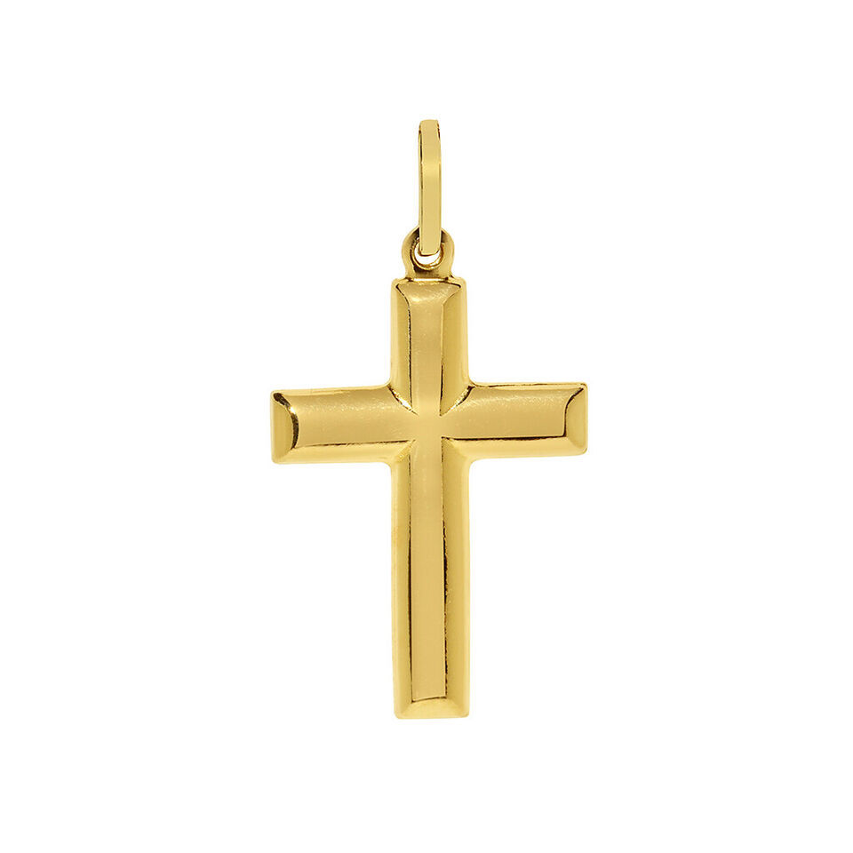 Genuine 14k Yellow Gold 1.18" Hollow Latin Cross Religious Pendant For Men Women