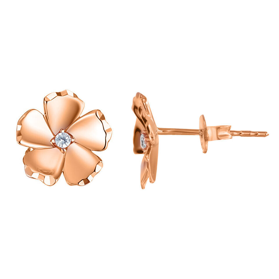 Genuine 14k Rose Gold 9mm Cubic Zirconia Flower Earring Studs for Women