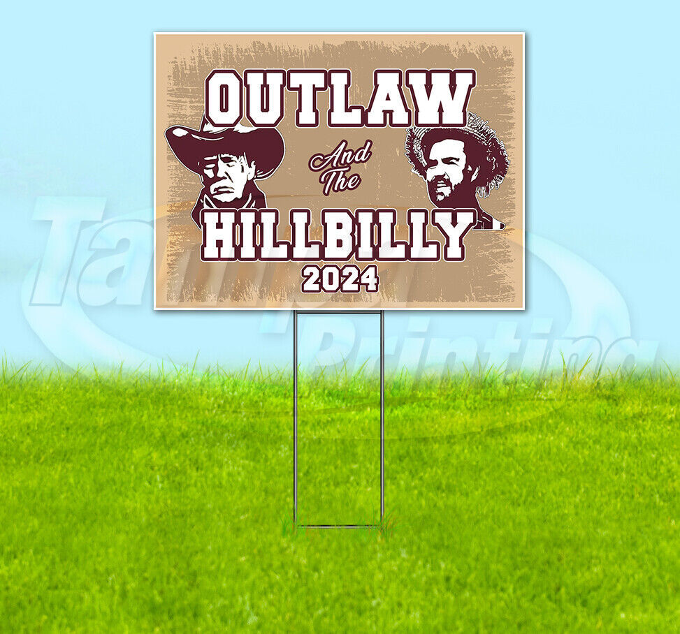 OUTLAW AND THE HILLBILLY TRUMP VANCE 2024 18x24 Yard Sign Snipe Election YS00123