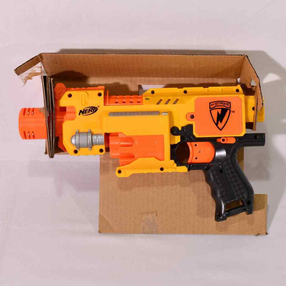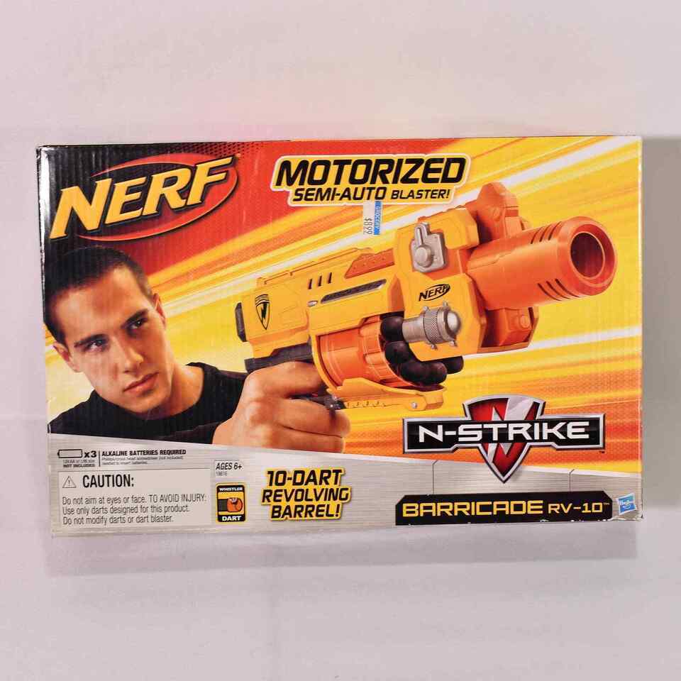 For sale is this NERF N-Strike Barricade RV-10 Motorized Semi Auto Blaster Dart Gun with its original box. I have tested the motorized component and it works great. The battery compartment is free of corrosion. See all the photos for what is included!