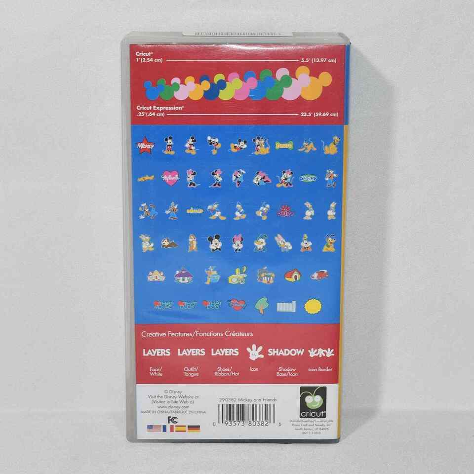 For sale is this used Cricut Cartridge of Disney's Mickey and Friends. Comes with the overlay, case, disk, and instructions. See all the photos and ask questions prior to purchasing.