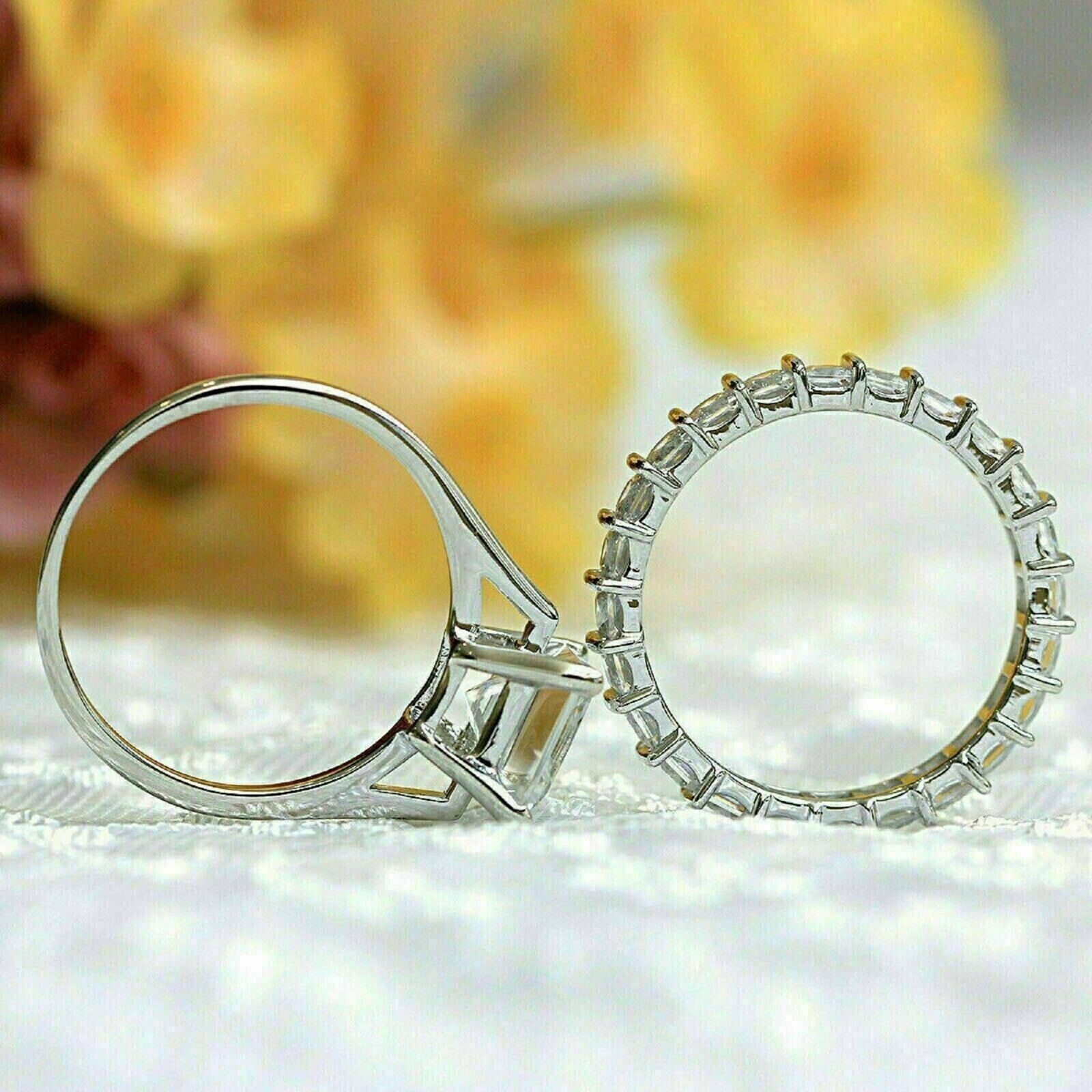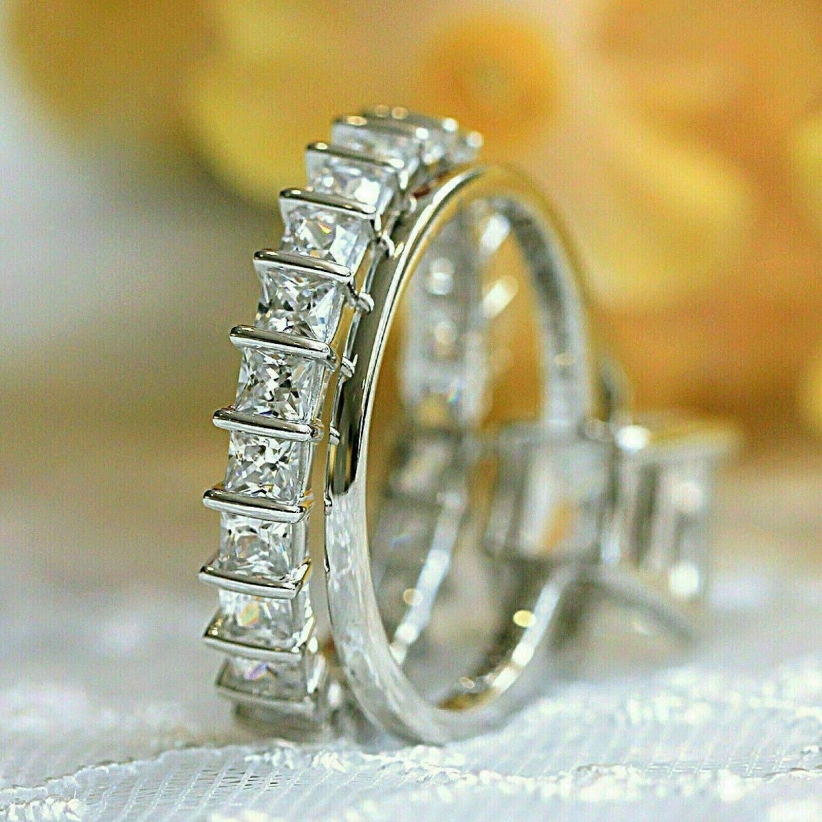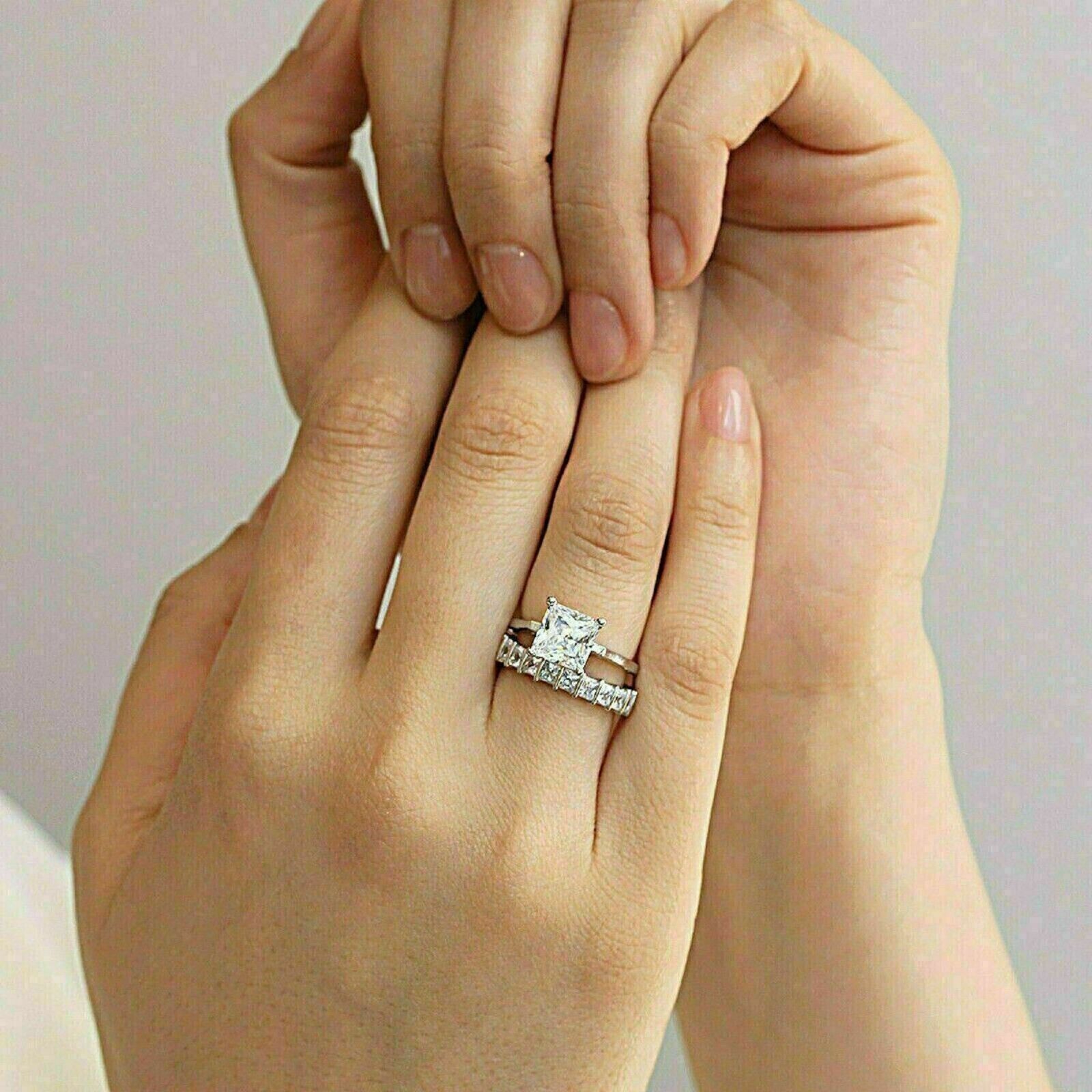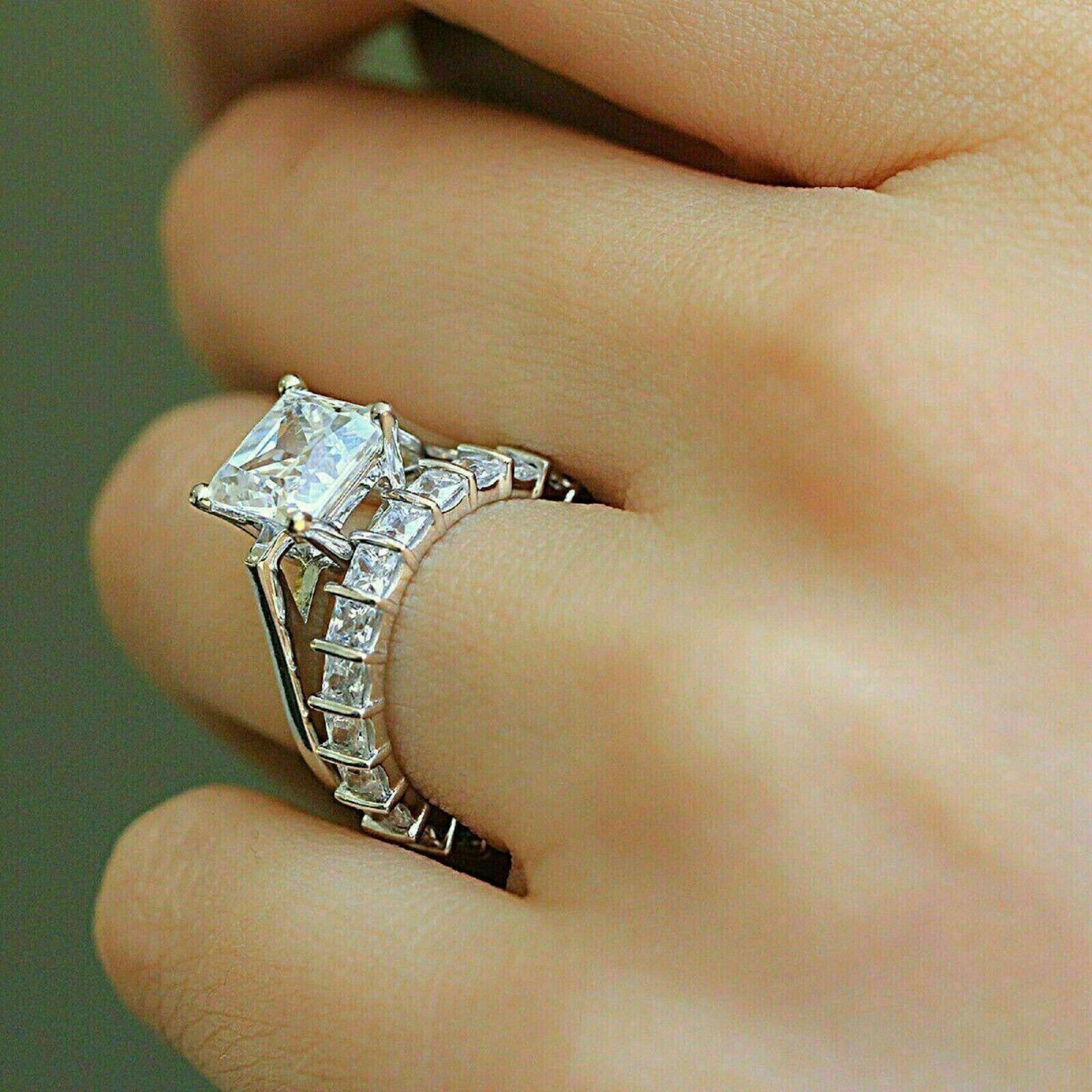 2.75Ct Princess Cut Lab Created Diamond Bridal Set Ring 14K White Gold Plated