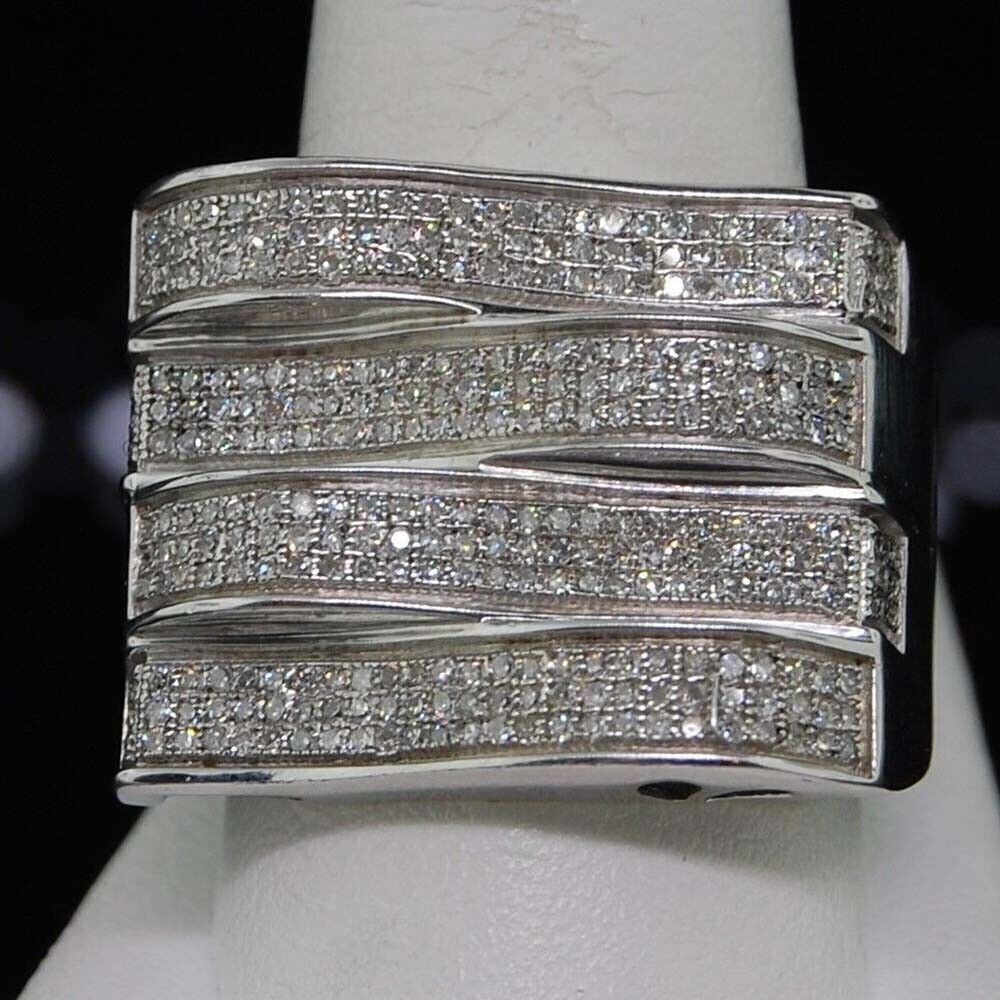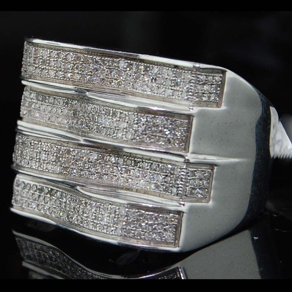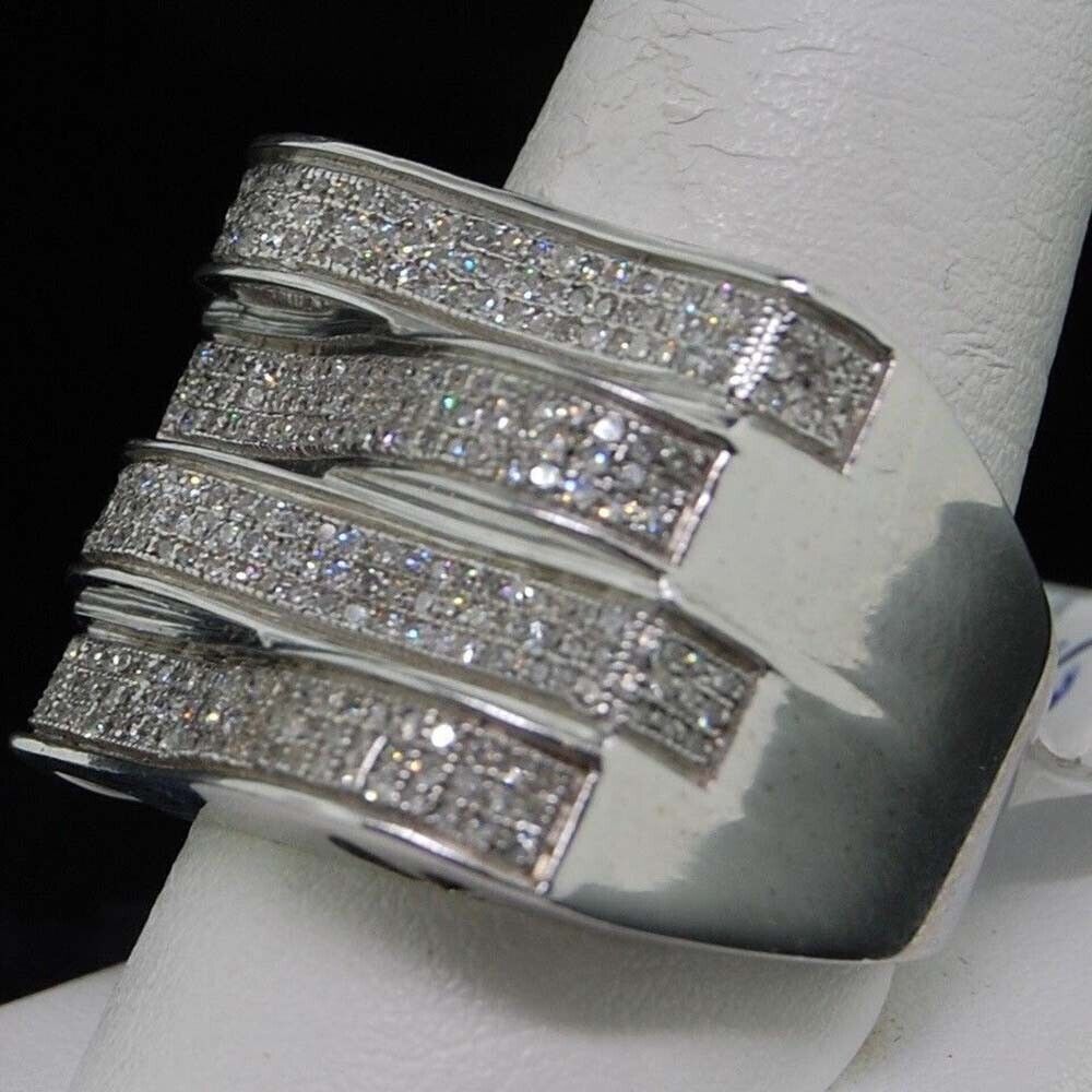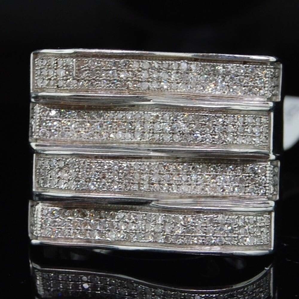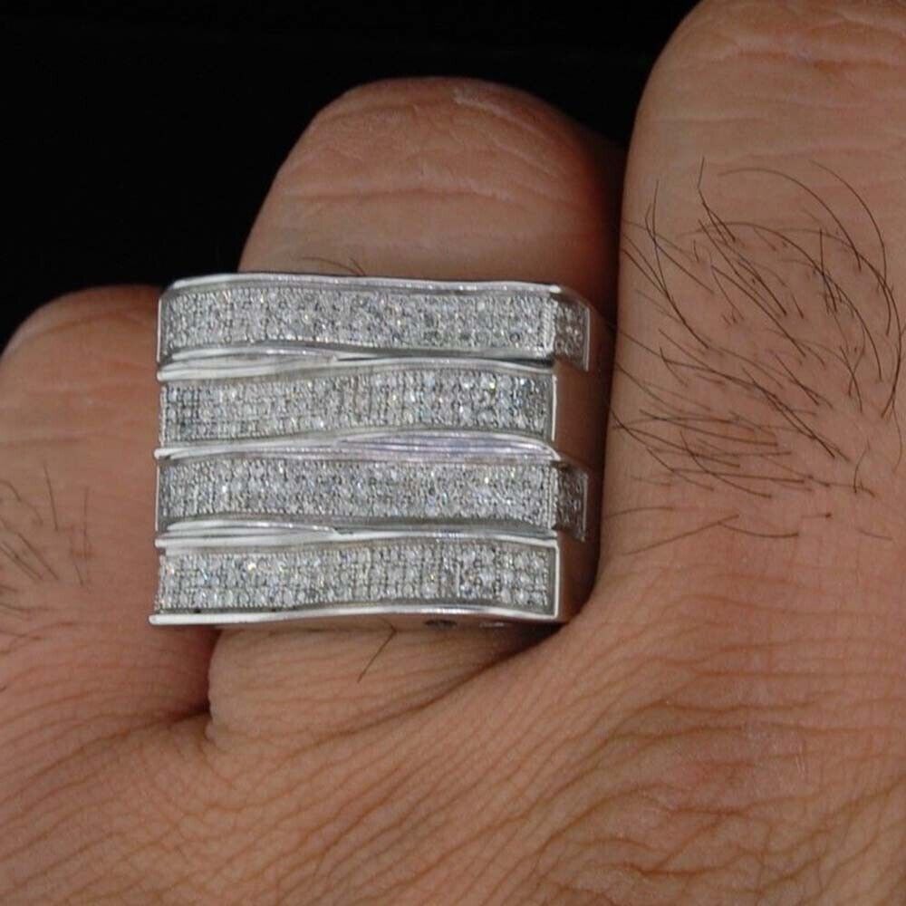 1 ctw Brilliant Moissanite 14K White Gold Plated 4 Row Pave Pinky Men's Ring