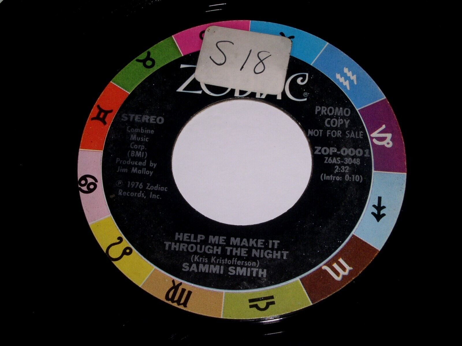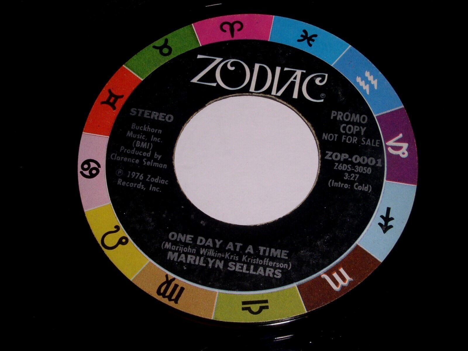 This is an original, vintage, promotional 45 rpm phonograph record by Marilyn Sellars and Sammi Smith entitled, "One Day At A Time". Flipside: "Help Me Make It Through The Night". Record label Zodiac ZOP-0001.