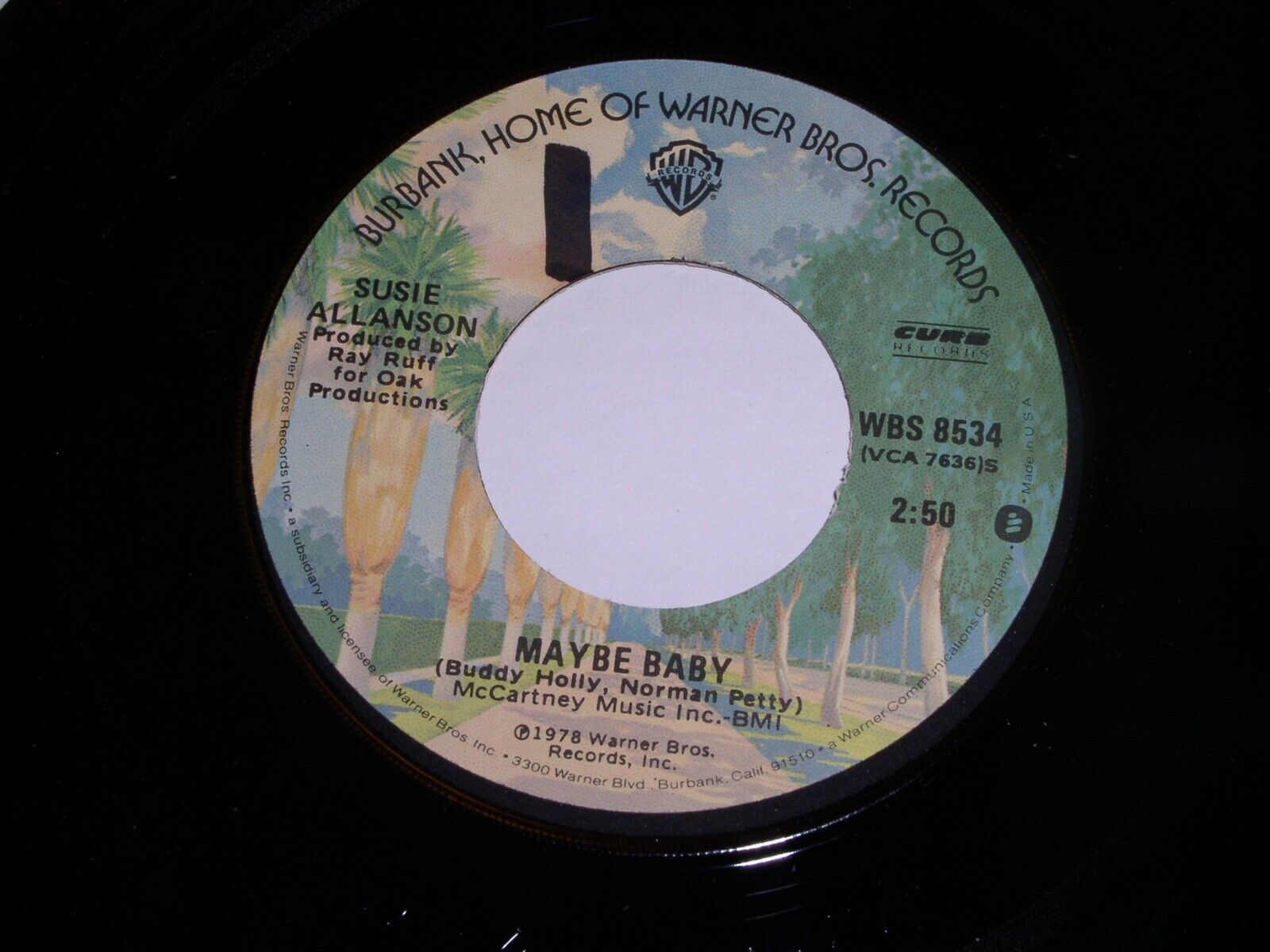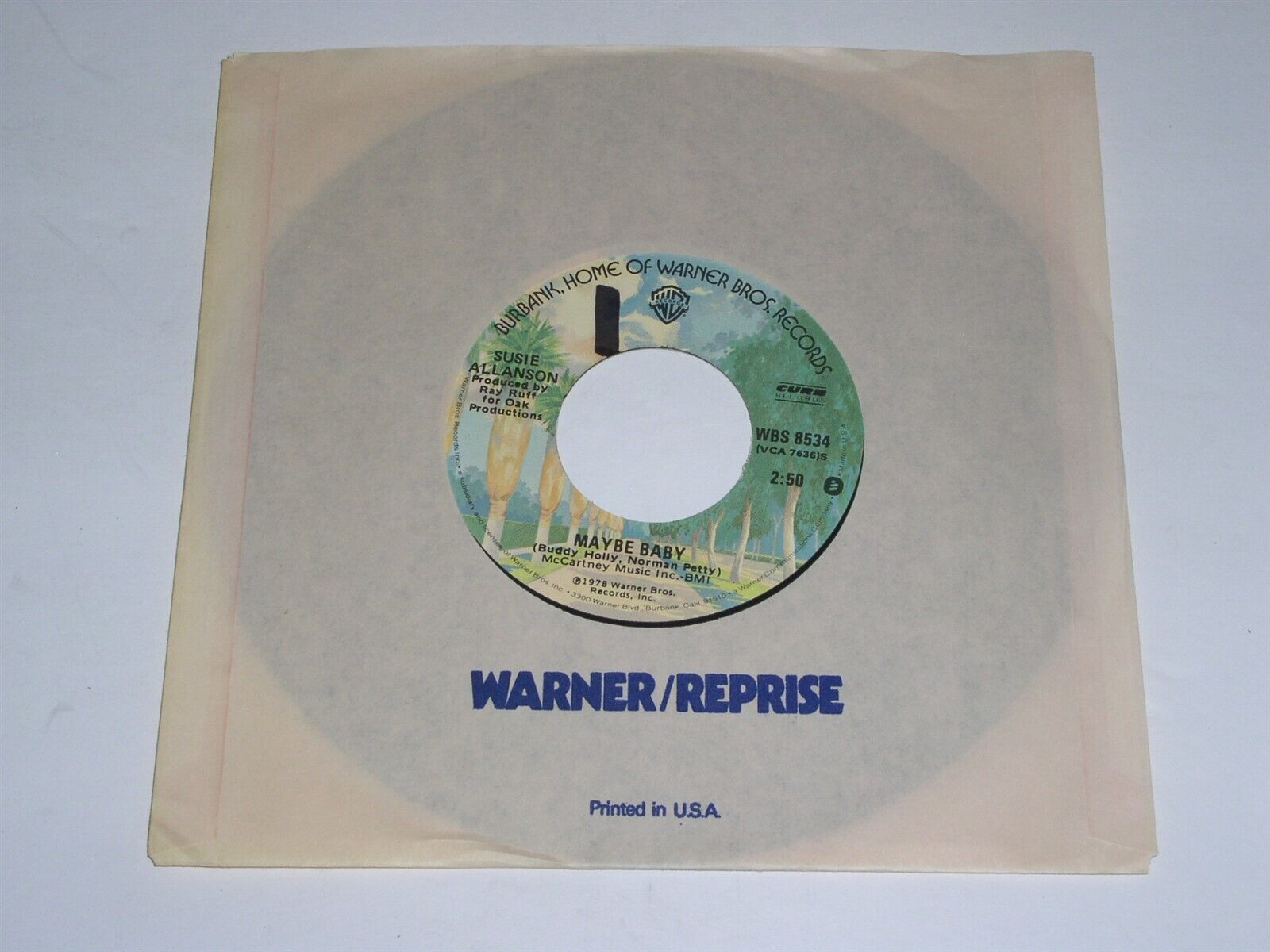 This is an original, vintage 45 rpm phonograph record by Susie Allanson entitled, "Maybe Baby". Flipside: "Hide Me In Your Love". Record label Warner Bros WBS 8534. Comes in its original Warner/Reprise paper sleeve as shown.