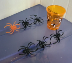 Shot Glass 6 Spider Rings Halloween Pranks Black Orange Fly Decorative Funky