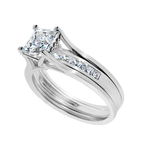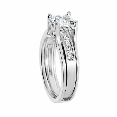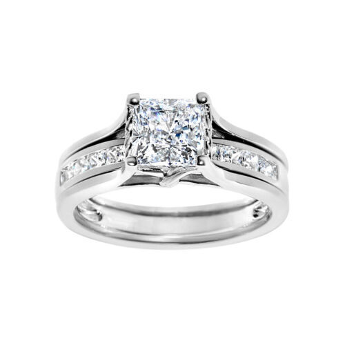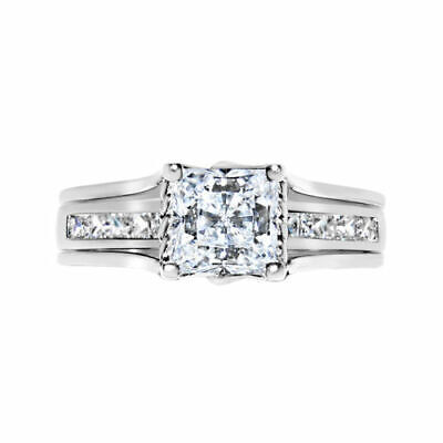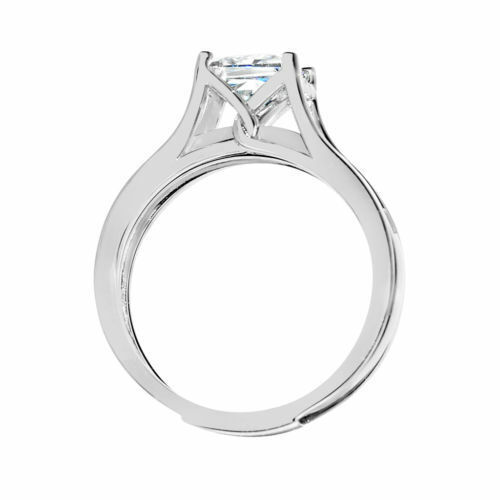 Solid Genuine 14k White Gold 1 3/4ct Princess Fine Cubic Zirconia Engagement Rin