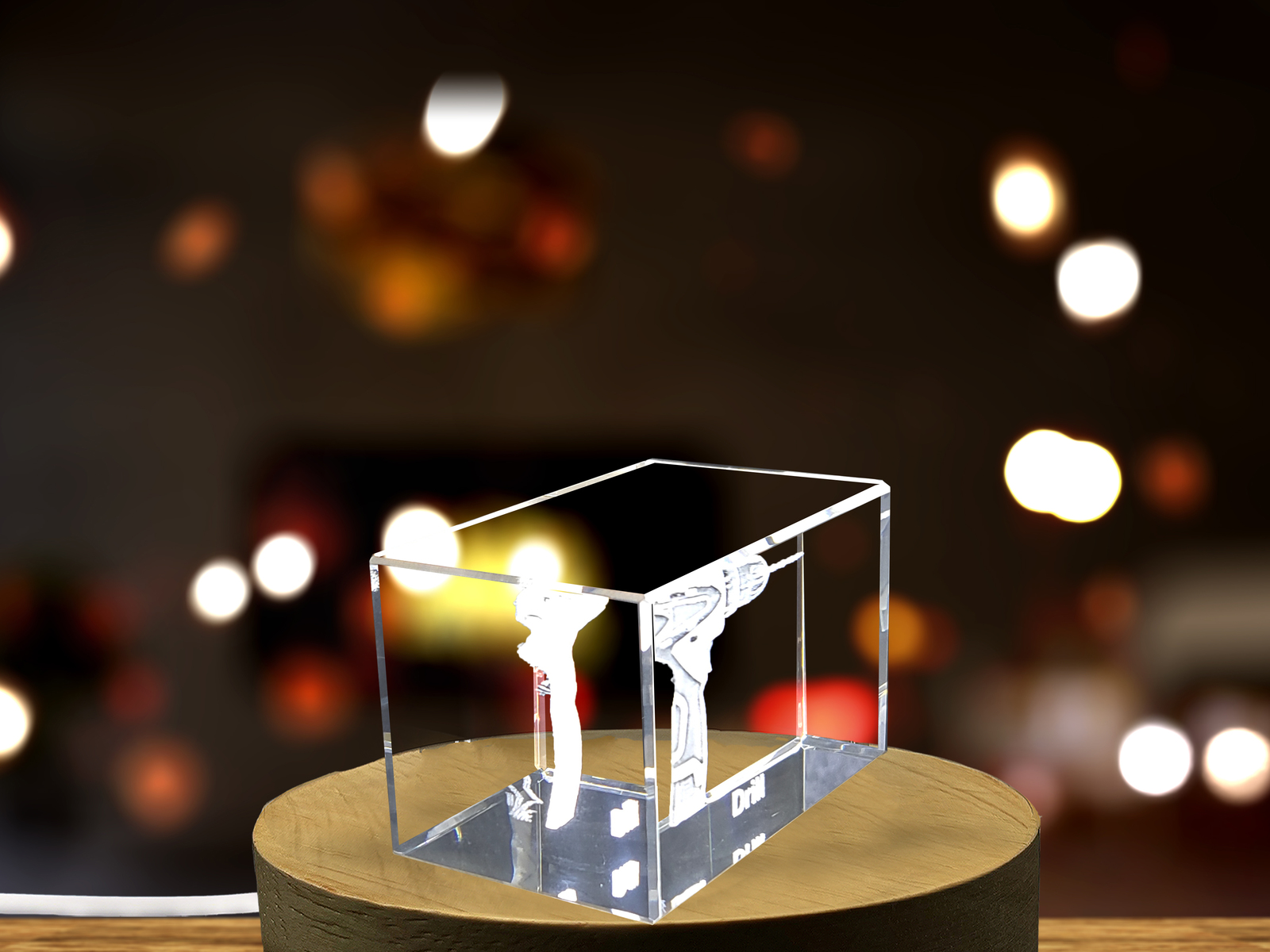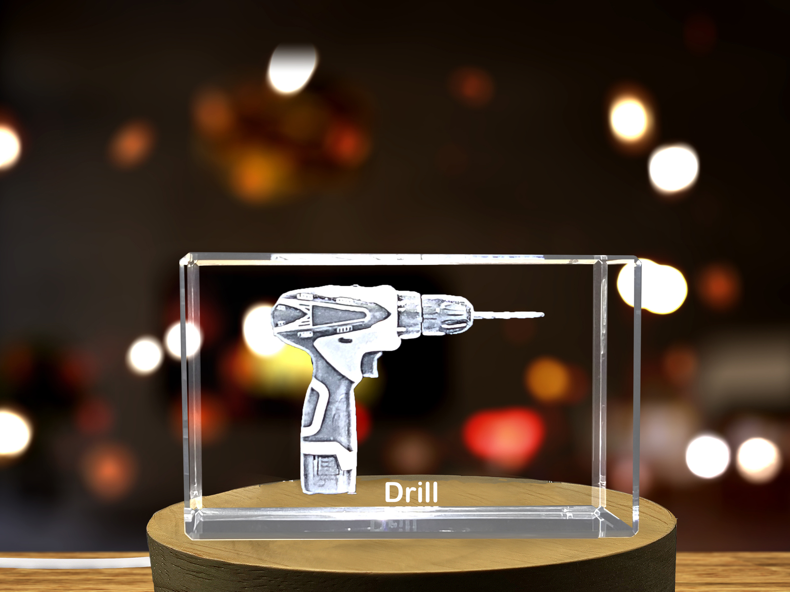 Behold this exquisite crystal sculpture portraying an intricately engraved electric hand drill. Though measured in mere centimeters, the master engraver has painstakingly recreated its distinct features in unbelievable detail.