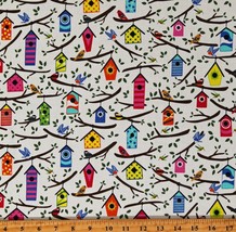 Cotton Birdhouses Birds Nature Backyard Birdwatching Home Tweet Home White Cotton Fabric Print by the Yard (AH101-WH2)
