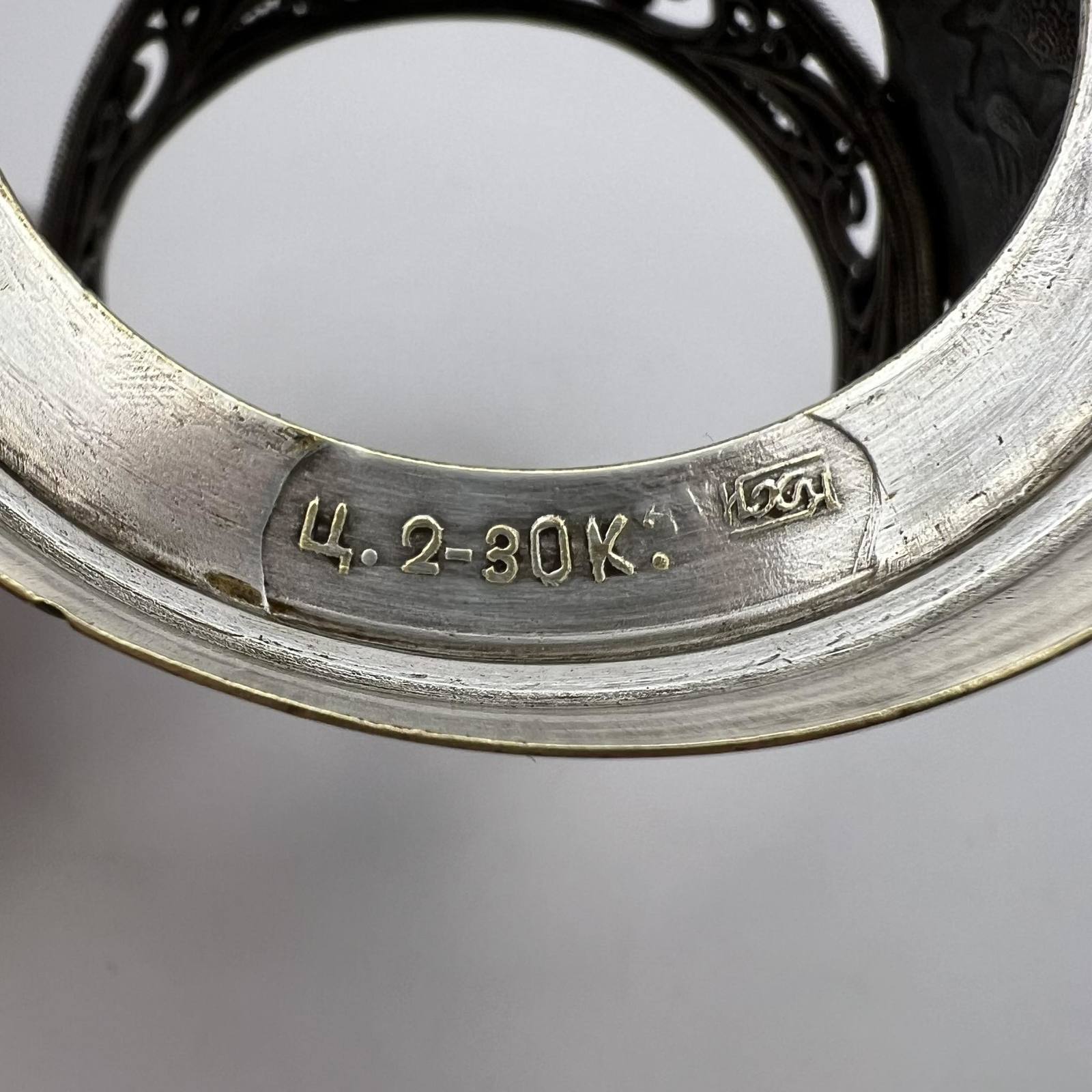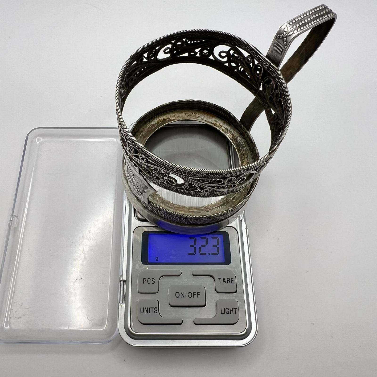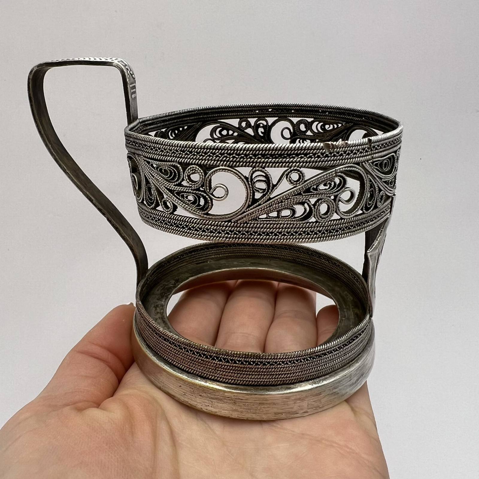 1960 Vintage Soviet Glass Tea Cup Holder Silver Filigree Plated Signed GAZ