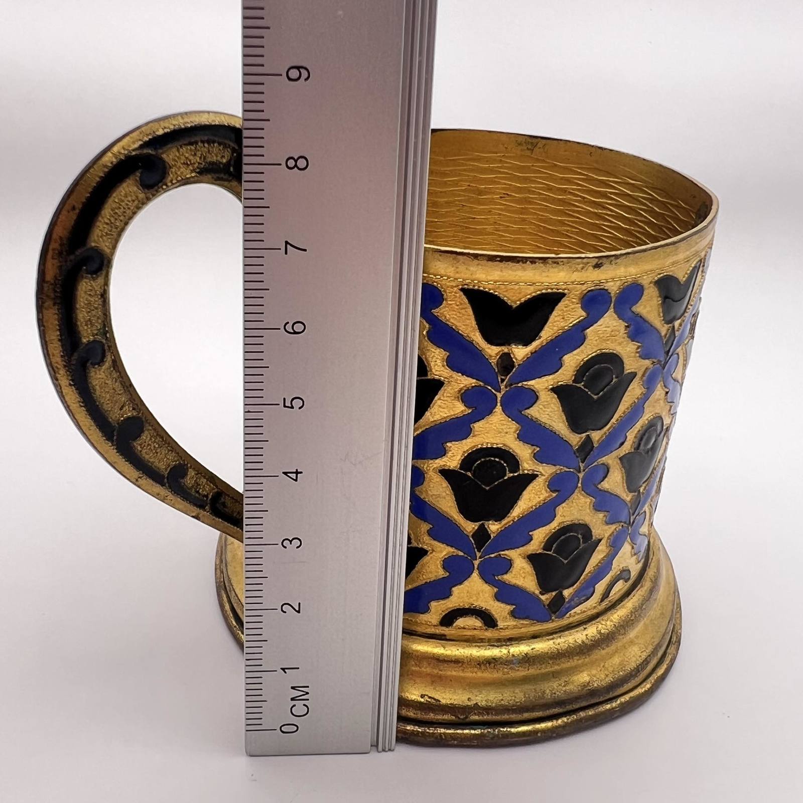 Unusual Vintage Soviet USSR Glass Tea Cup Holder Gold Plated Hot Enamel Signed