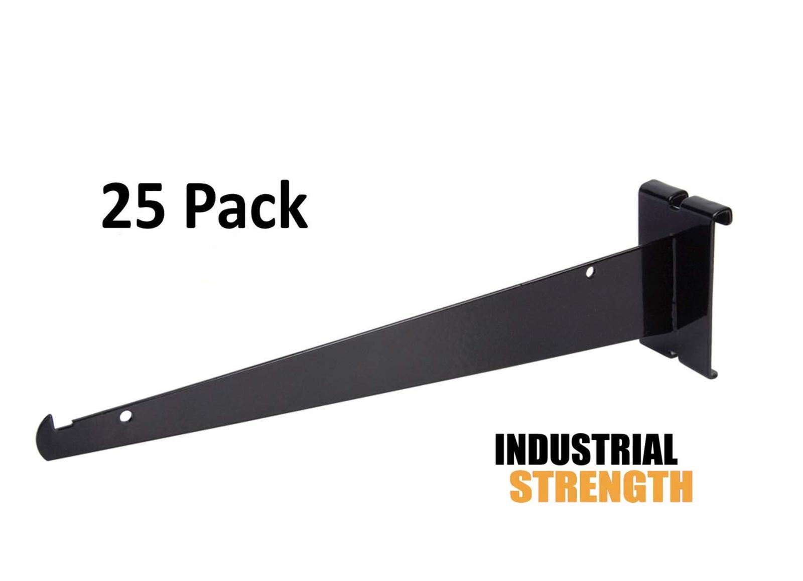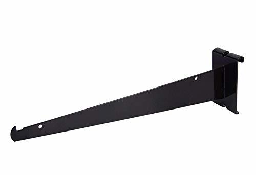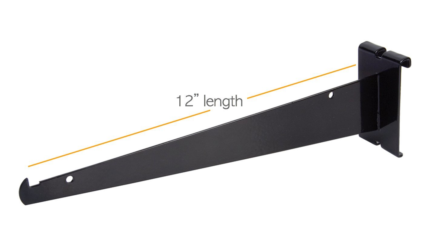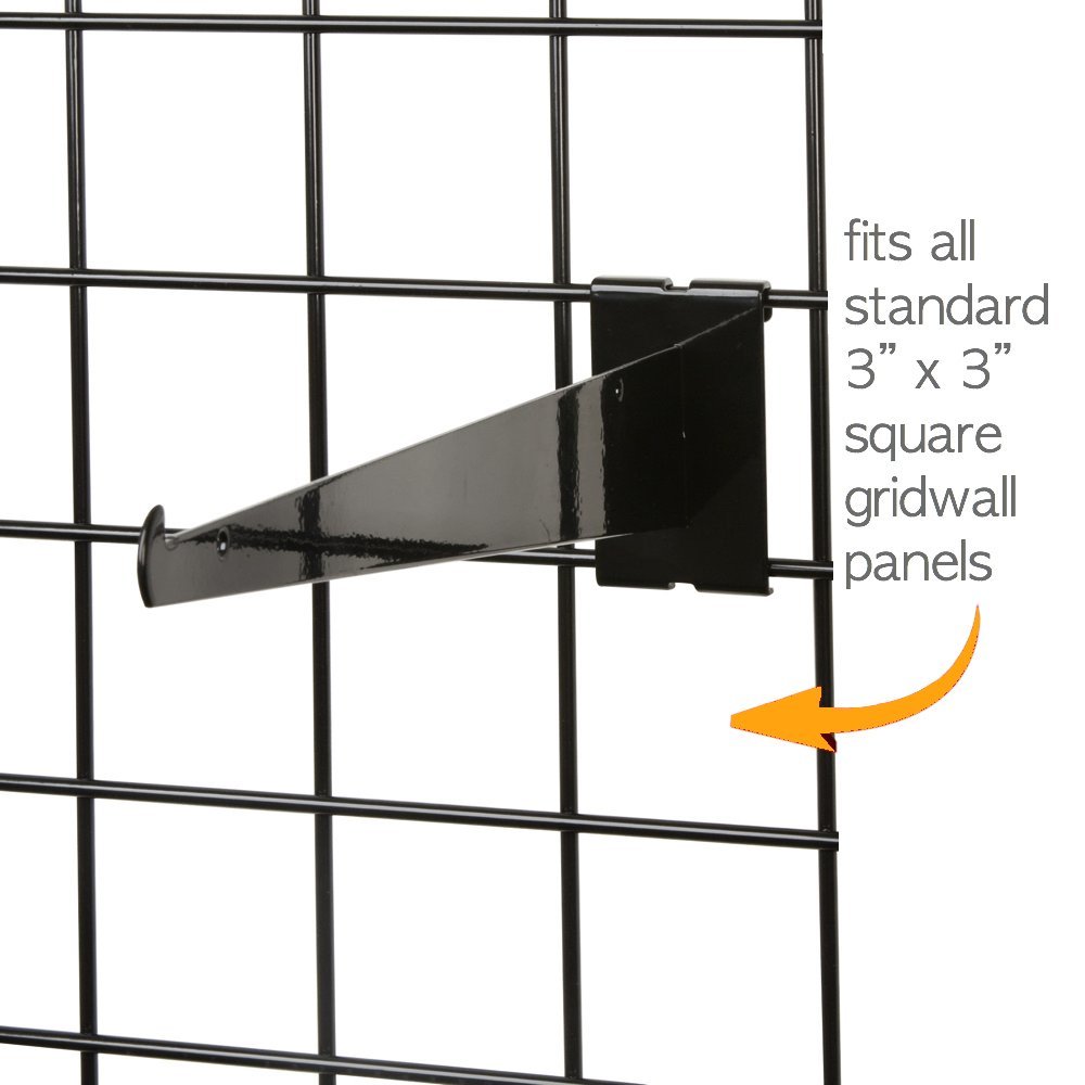 Black Gridwall Shelf Brackets - Sell all of your various products and merchandise on shelves that are held up by these Grid Panel Metal Shelf Brackets. With these Grid Brackets supporting your shelves, you will have so much more available space on your Gridwall. At 12" in length, this gridwall bracket is great for supporting shelves because it is strong, sturdy, and reliable. Plus, the sleek black finish will appeal to the sense of your customers, and they will love seeing your merchandise on shelves supported by these 12" gridwall brackets. Sold in a pack of (25) brackets.
