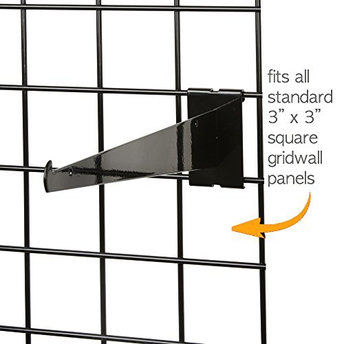 Only Hangers Shelf Brackets for Gridwall, 12" Black Grid Panel Brackets (Pack of