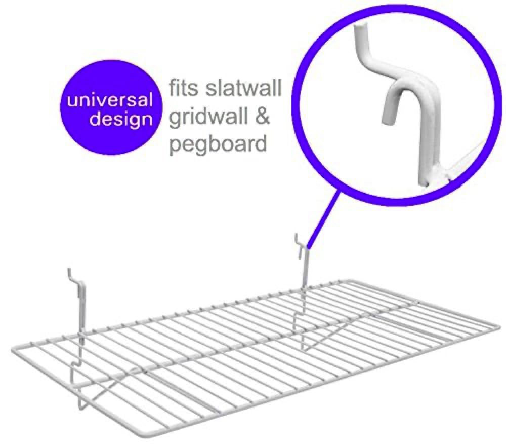 Only Garment Racks White Wire Slatwall/Gridwall Shelf 24" L x 12" D