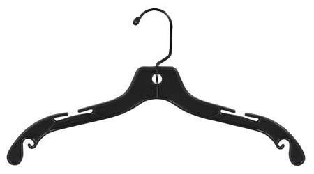 Dress hangers are the most popular choice of hanger by retailers. In fact, dress hangers have become an industry standard when it comes to clothing. So why not get it at the best value possible? Our 17" black plastic dress hangers feature added elastomers for maximum flexibility, and black swivel hooks, which are designed to save space on clothing racks. Additionally, each hanger contains notched shoulders for secure hanging of any style dress or strap.