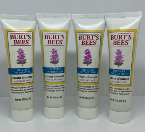 4 Burt's Bees Intense Hydration Cream Cleanser Clary Sage 0.75 oz Ea Travel Size.