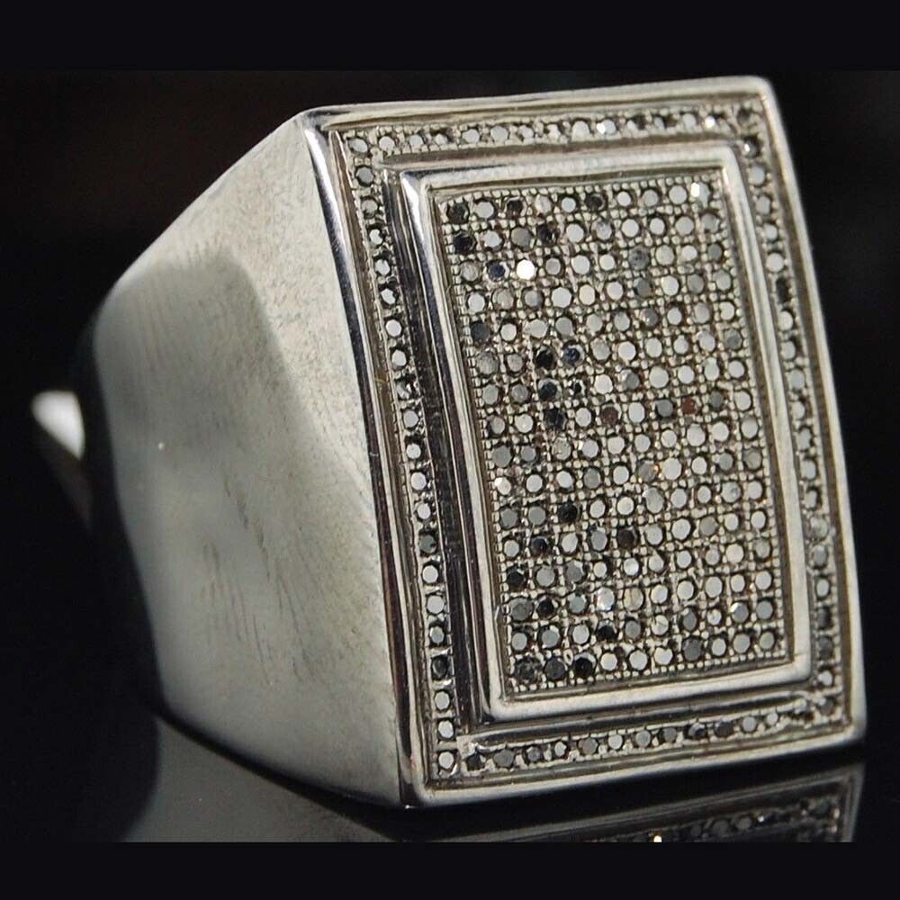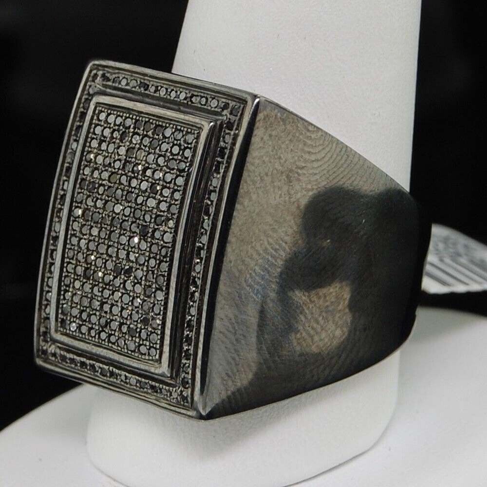 0.80 Ctw Created Black Spinel 14K Black Gold Plated Pinky Statement Men's Ring