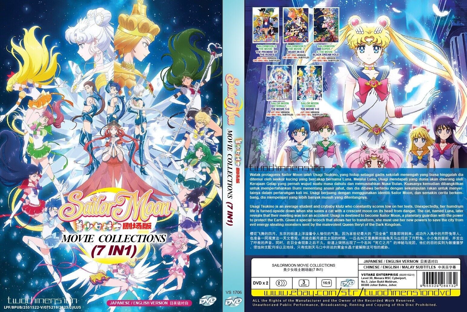 SAILORMOON MOVIE COLLECTION 7 in 1 with ENGLISH DUBBED
