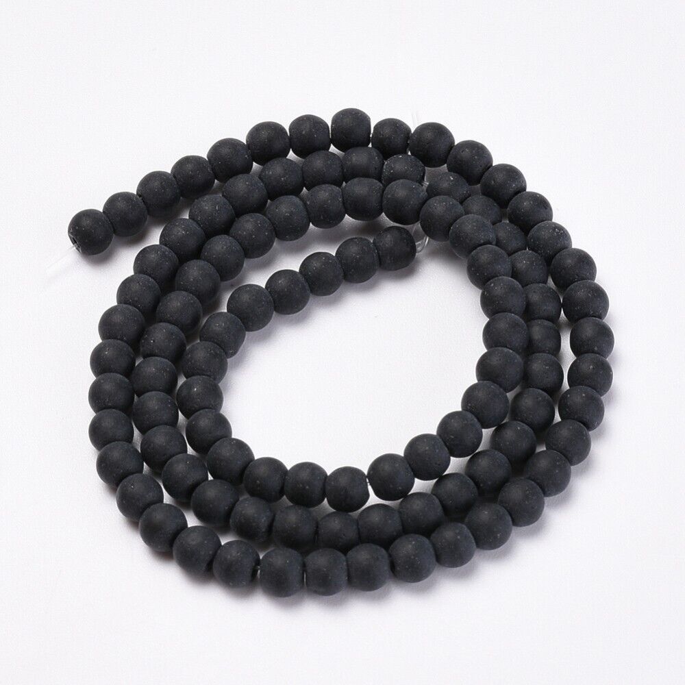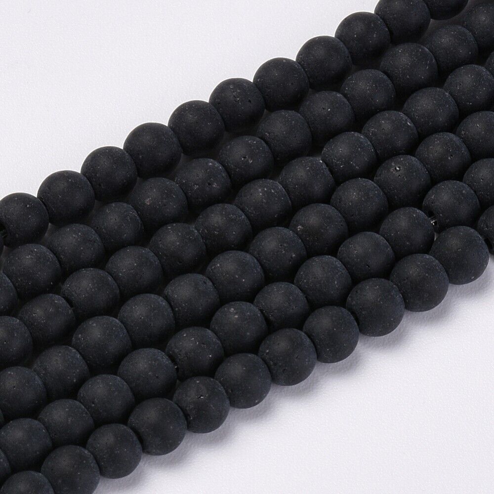 Description:Transparent Glass Beads Strands, Frosted, Round, Black