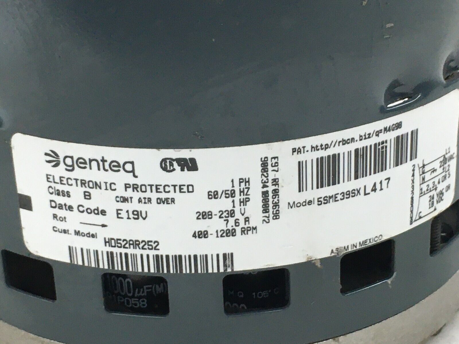 This is Genteq Endura 5SME39SXL417 ECM Programmable Blower Motor 230V 1HP CWLE Carrier HD52AR252 used part.
