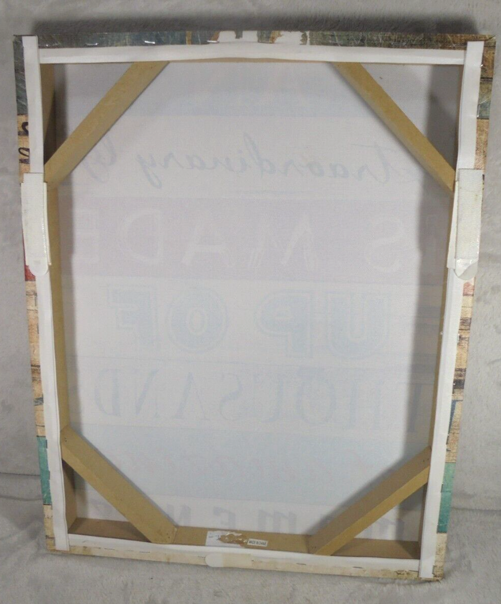 Description: Colorful multi text phrase for fun home decor. Easy to hang. Wood frame.