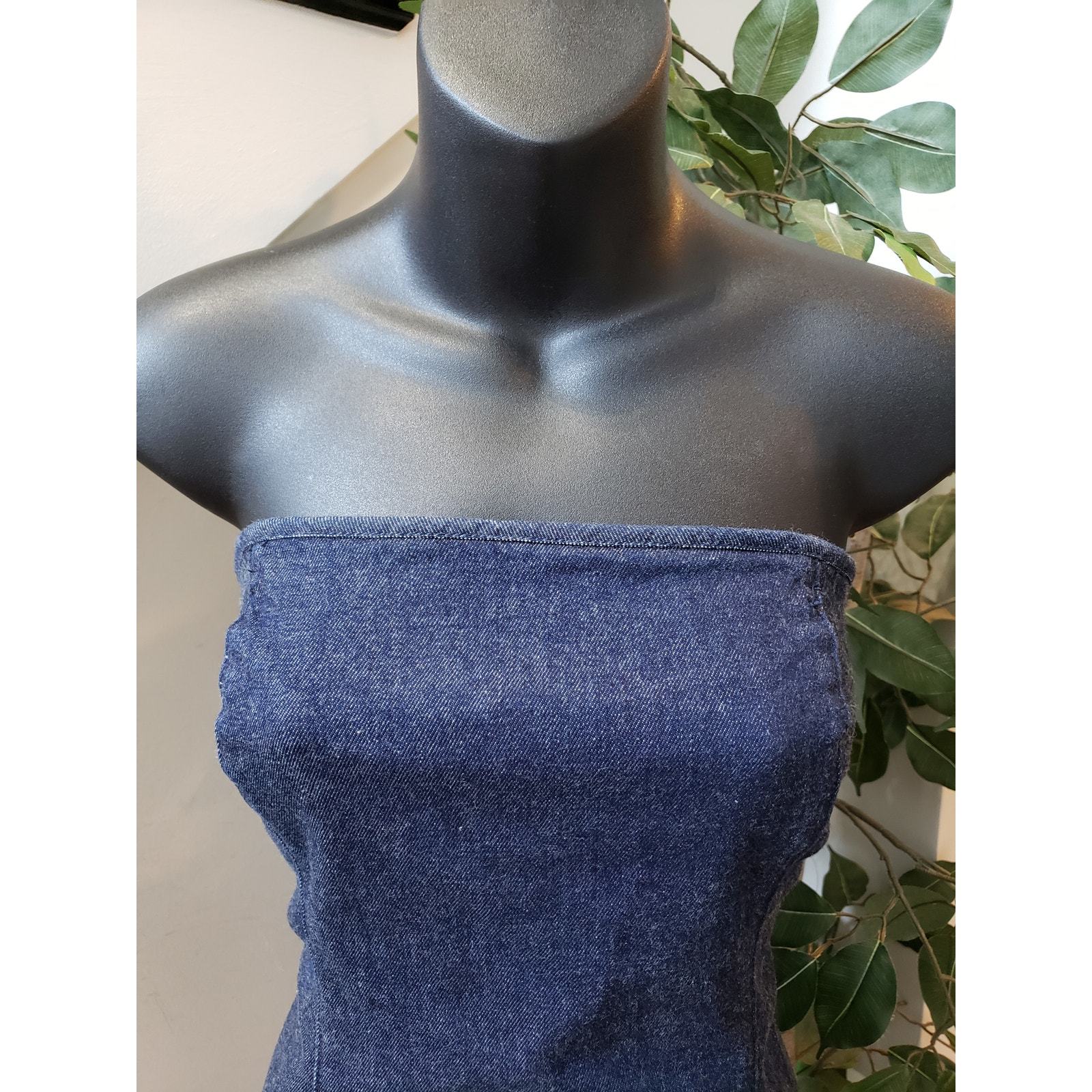 Gap Sheath Dress Womens Size 12 Cotton Blue Solid Off The Shoulder Back Zip