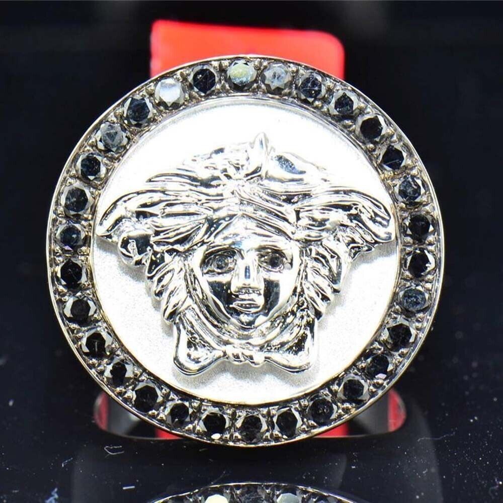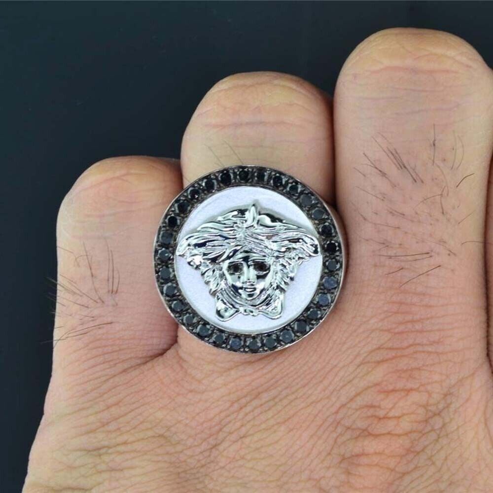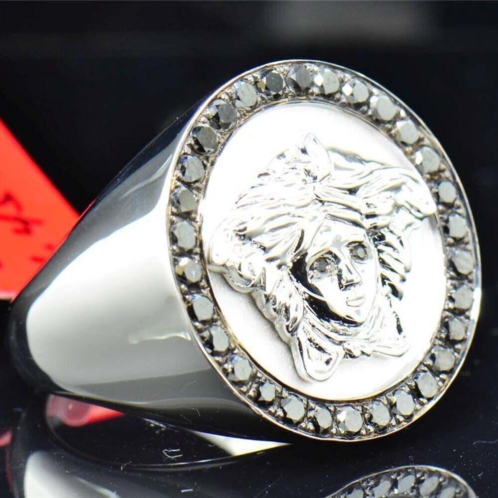 1.45 Ctw Black Moissanite 14K White Gold Plated Medusa Head Pinky Men's Ring