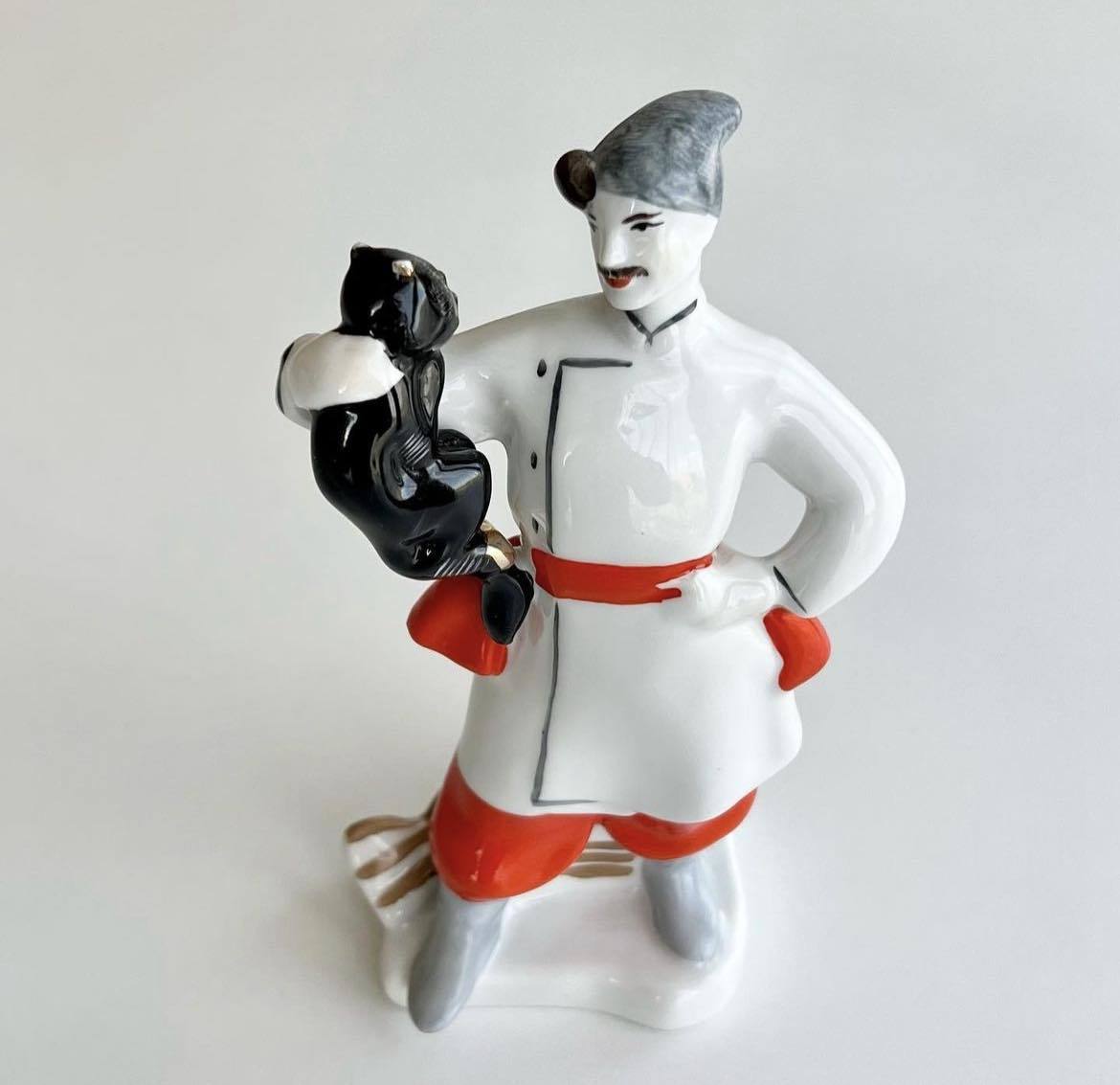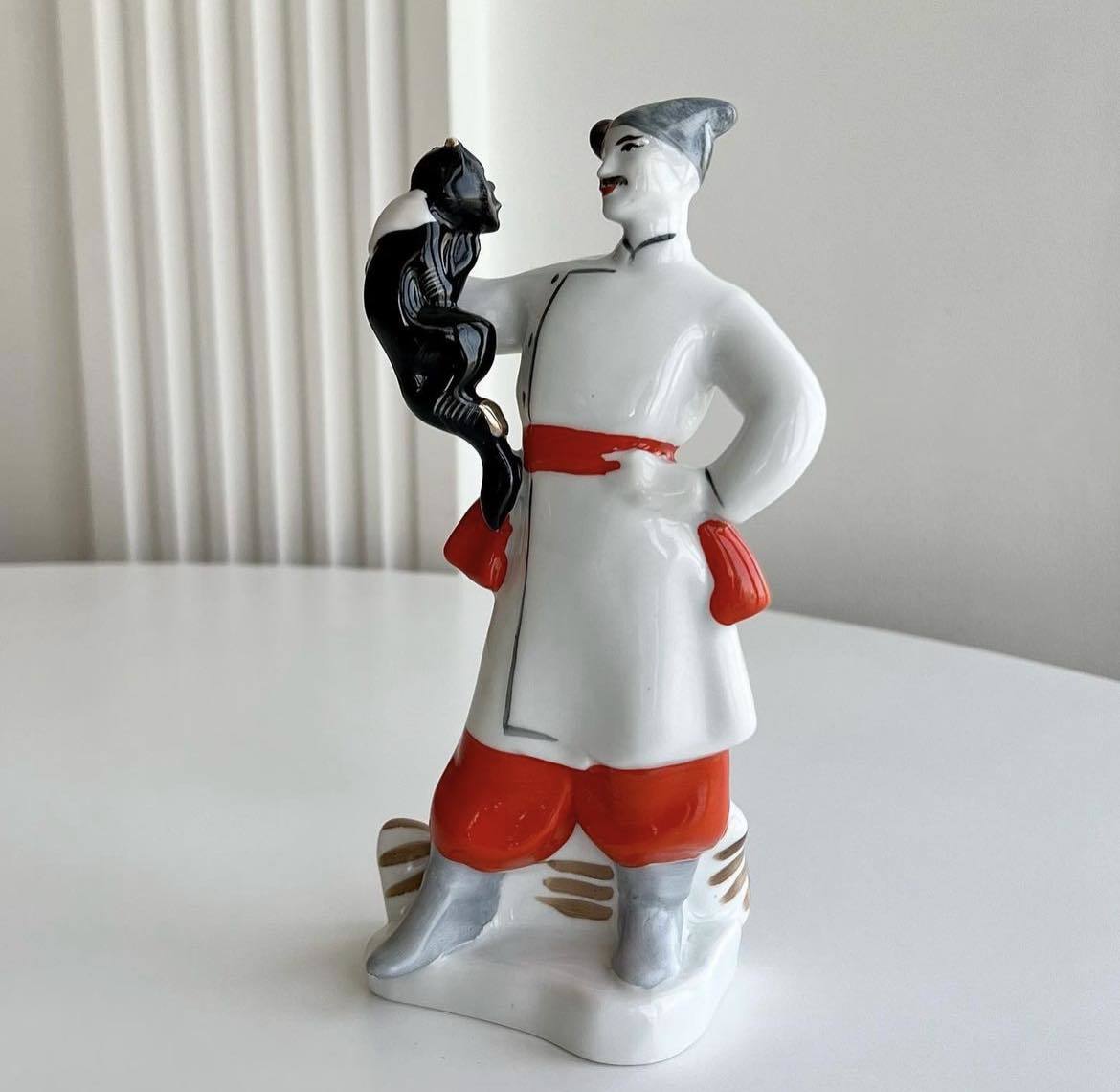 The figurine depicts Vakula with a devil on his shoulder. Vakula is the hero of M. V. Gogol's novel.