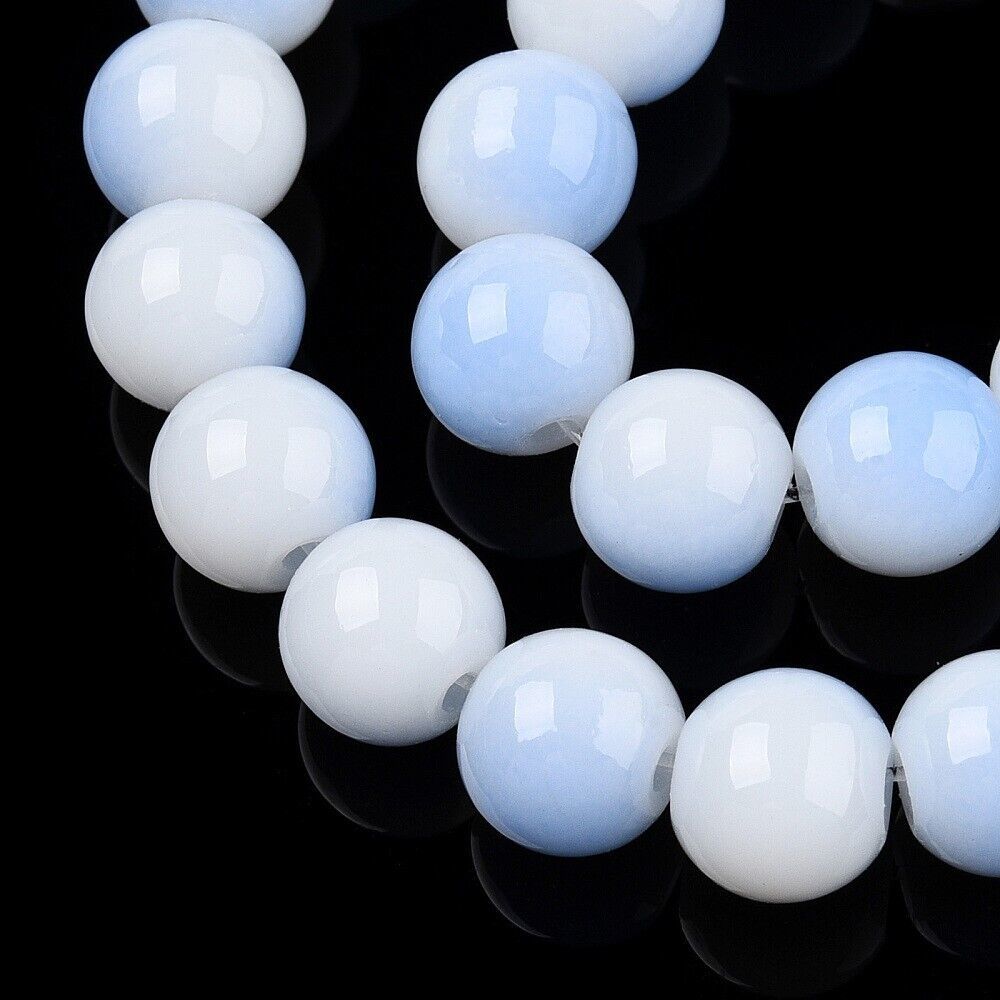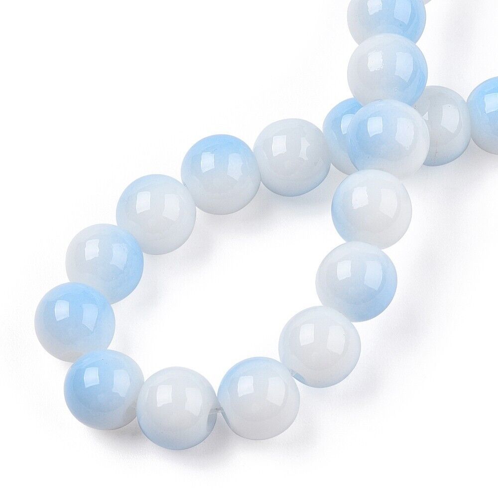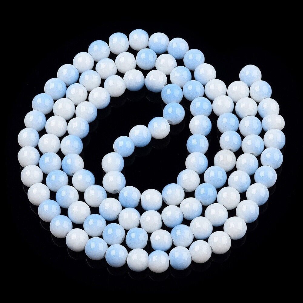 Description:Two Tone Opaque Baking Painted Glass Beads Strands, Round, blue