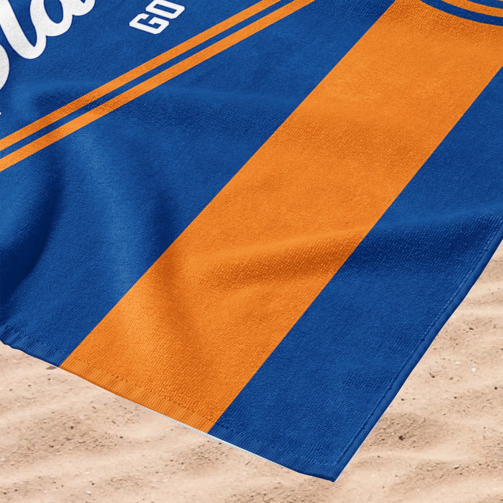 The towel boasts eye-catching logo banners at both the top and bottom, bringing a dynamic flair to your beach day or poolside lounging. Done in your team's vibrant colors, this towel ensures that your fan spirit shines as brightly as your tan. It's more than just a towel; it's a celebration of your favorite team and a bold addition to your summer gear.