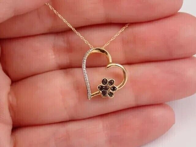 2Ct Round Lab Created Diamond Dog's Paw & Heart Pendant 14K Yellow Gold Plated