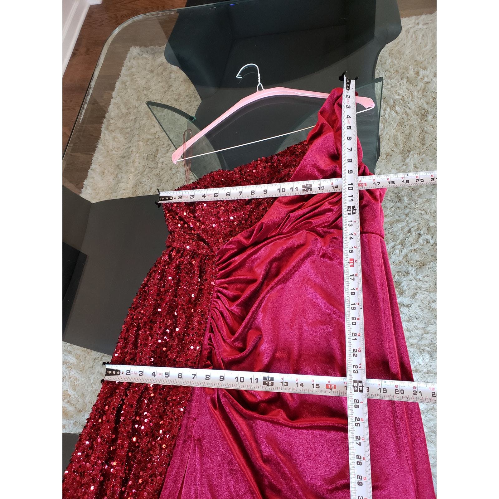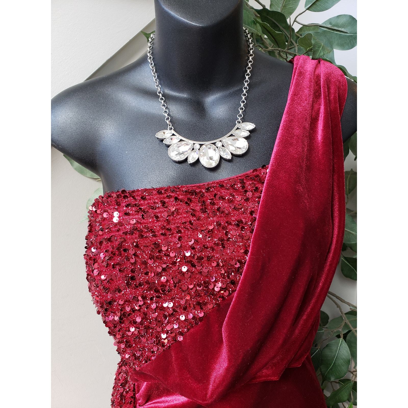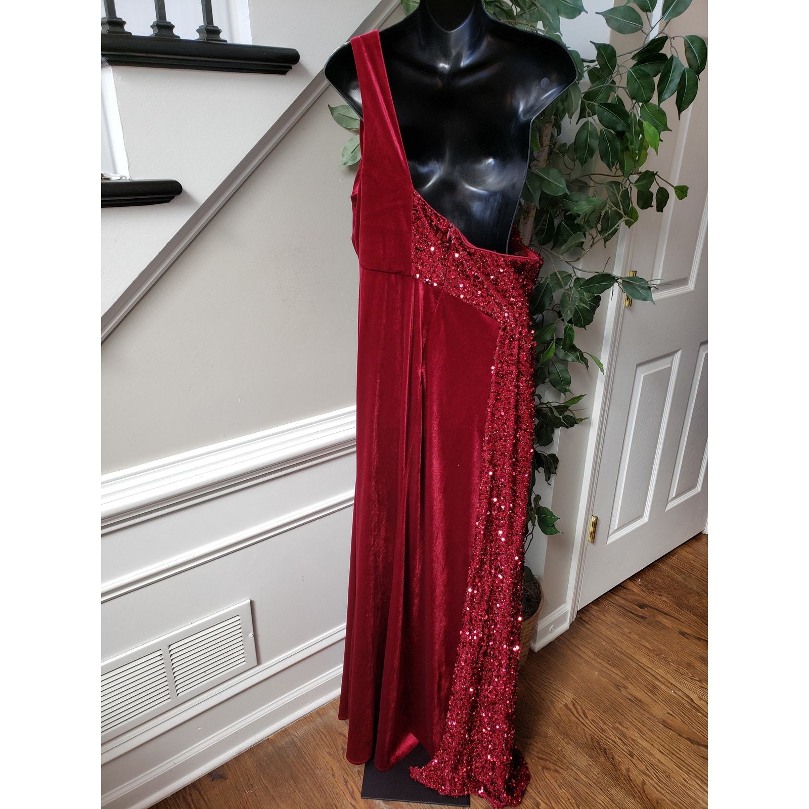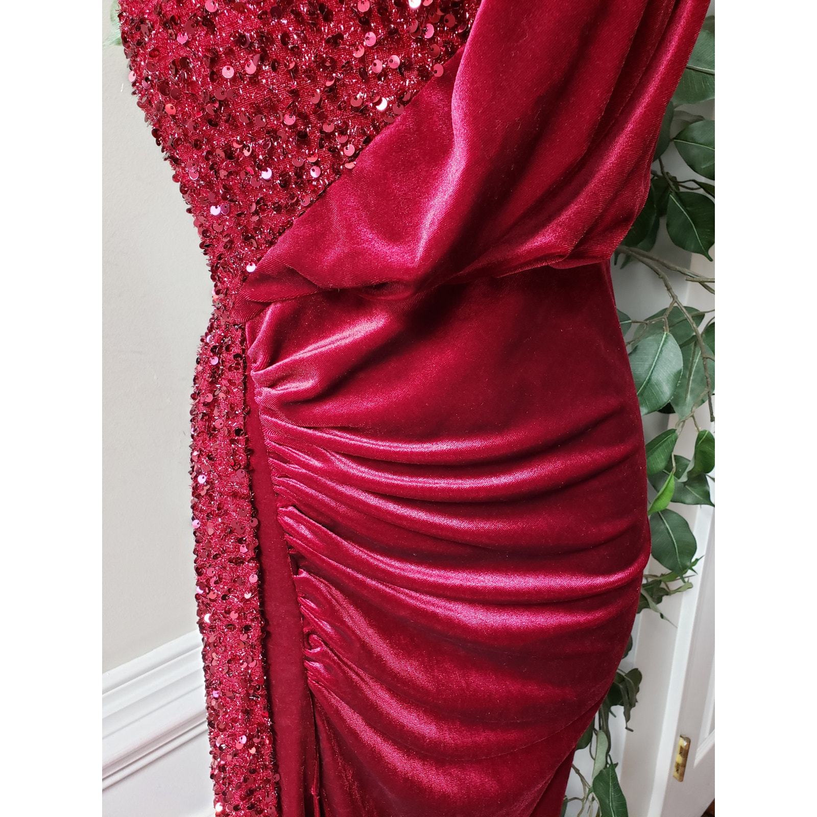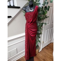Miss Ord Long Gown Women 2XL Red Sequin Velvet One Shoulder Sleeve Wedding Party