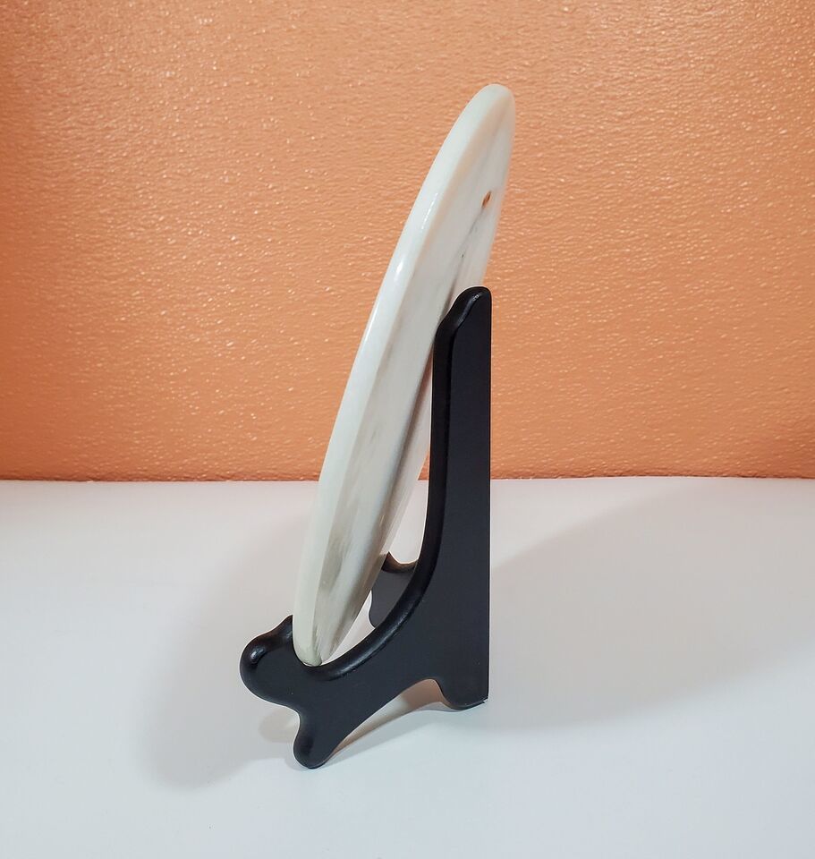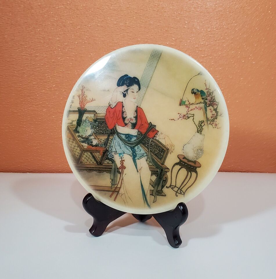 Vintage Hand-Painted Geisha Stone Plate with Wooden Stand | Home Decor Plate 8”