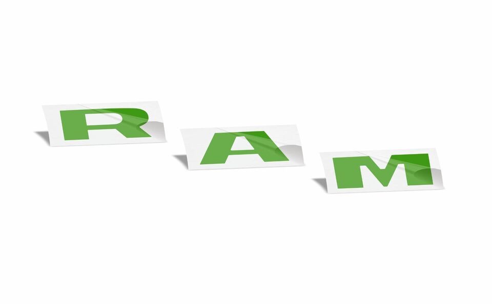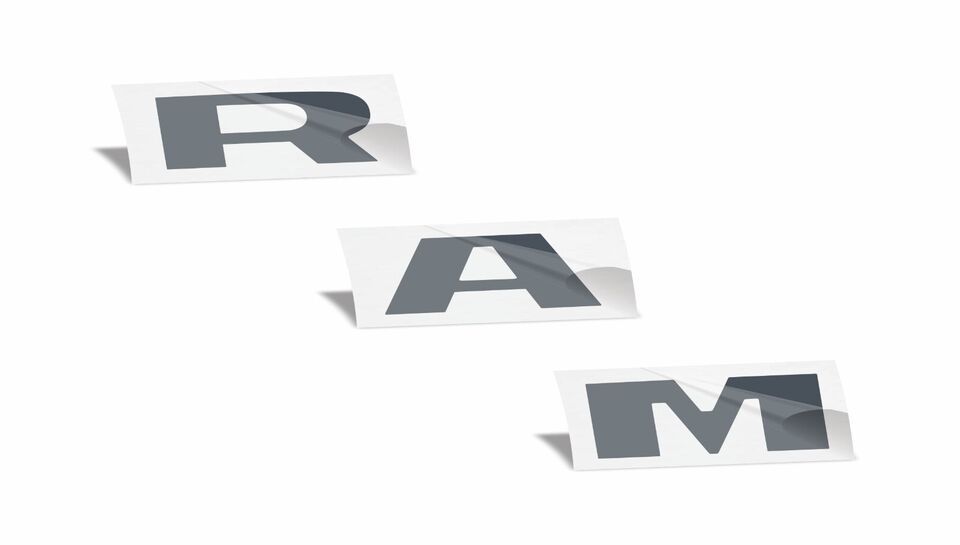 Decal (sticker) sized designed to be applied to the front face of the existing RAM lettering on the tailgate. The outer beveled edge remains exposed.